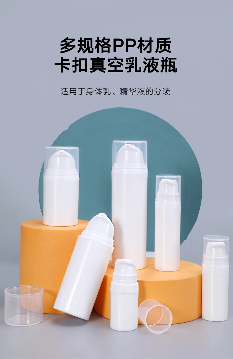 Бутылки для лосьона, вакуумная конструкция, безвоздушные бутылки для распыления используют технологию воздушного насоса, вместо насоса с соломой. Когда вы используете его и нажимаете распылитель, вакуумный насос поднимется до тех пор, пока лосьон не заработает. Это идеальный выбор для косметических средств лосьона.