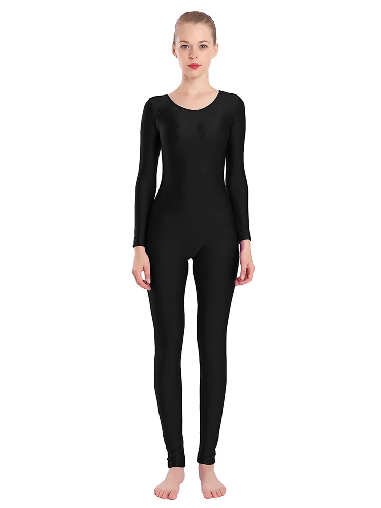AOYLISEY женский черный комбинезон с длинным рукавом, цельный спандекс, с глубоким вырезом, весенний мужской комбинезон для взрослых, Одежда для танцев Zentai