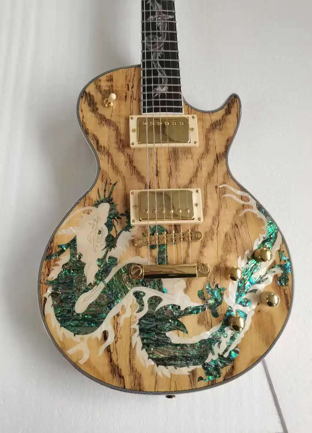 Бесплатная транспортировка, 6-ой электрогитара Наружная часть Дракон инкрустация корпуса, кленовым грифом shell инкрустированные дракон, адаптируемые под требования заказчика