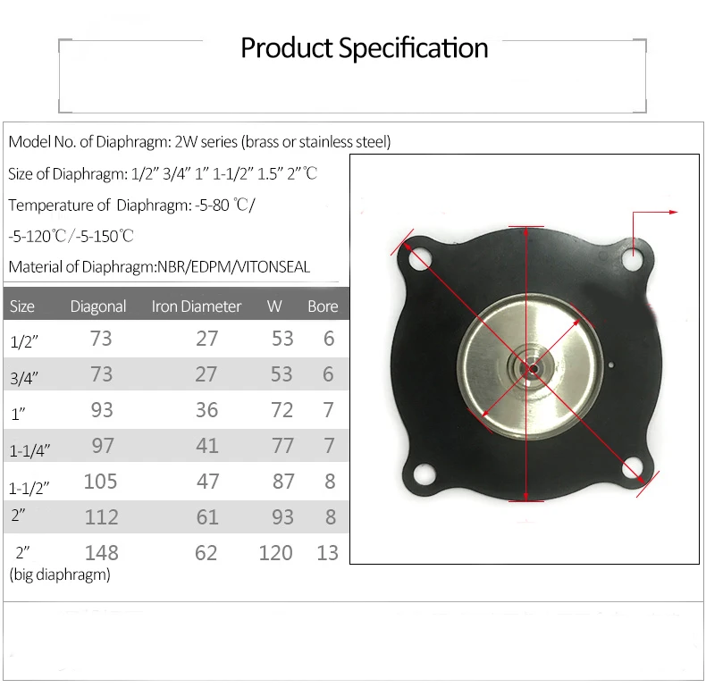Номер модели: Диафрагма для 2 Вт Размер: 1/2 ", 1/4", 1 ", 1-1/4", 1-1/2 ", 2" Материал: NBR (-5-80 градусов по Цельсию) EPDM (-5-120 градусов по Цельсию) Витонсель (-5-150 градусов по Цельсию)