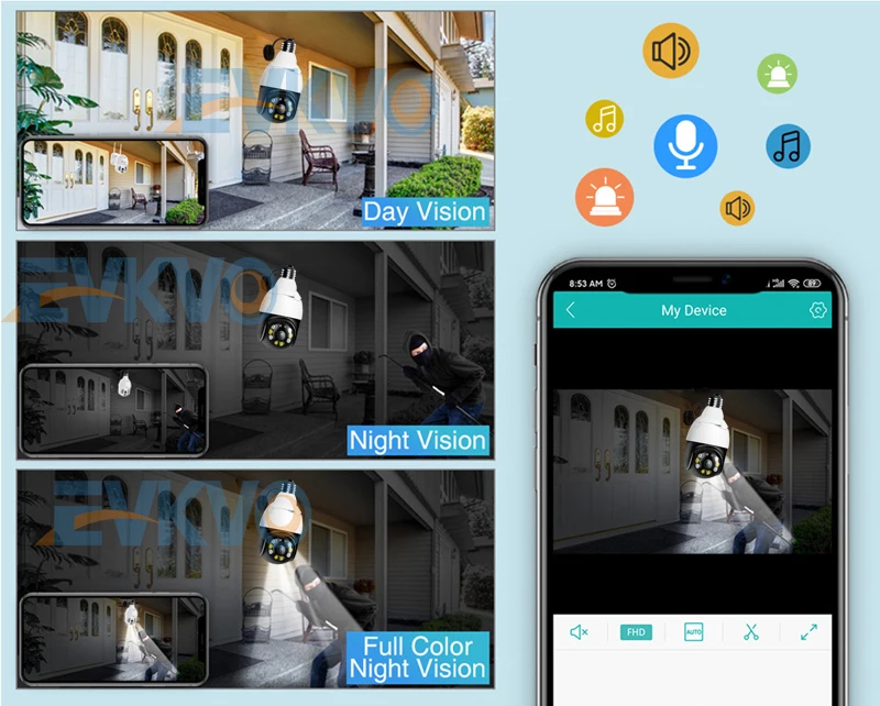 The wifi camera comes with Mic and speacker.You can talk to your kids,pets or visitors remotely via smartphone whenever and wherever you want,every situation of your family is in control.