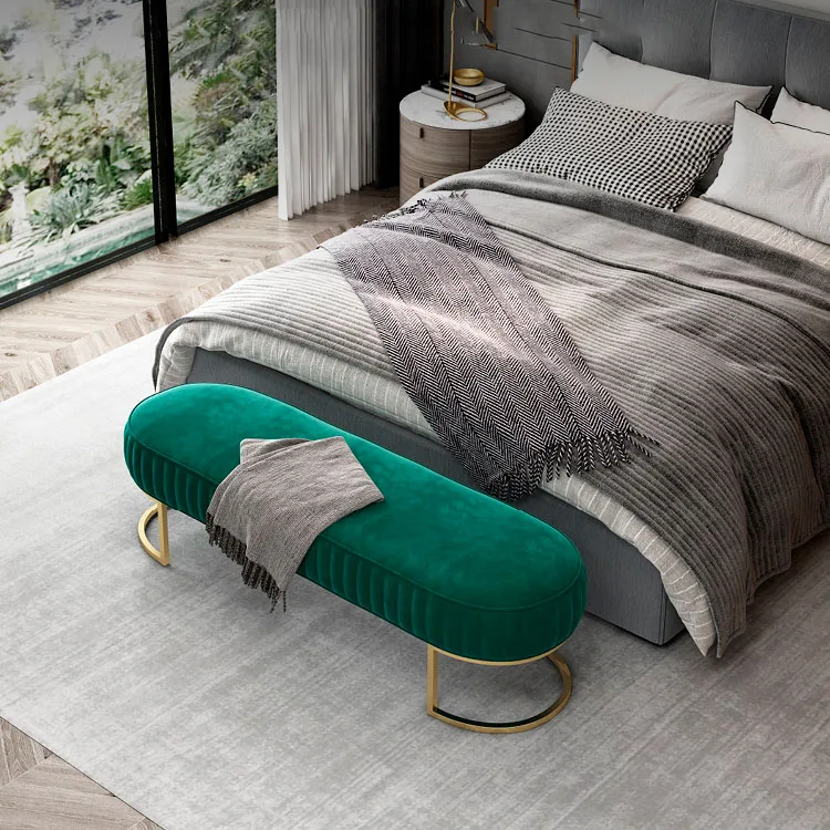 Elegant color and light luxury bed end stool, a tasteful home