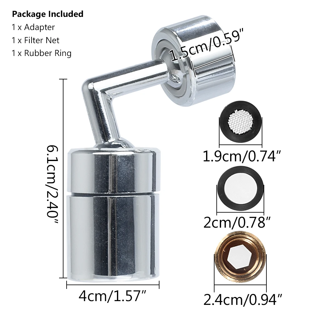 Особенности 100% Новинка! 720 °Вращающийся фильтр брызг кран. Два легированных шарика позволяют воде вращаться на 720 градусов плавно, что облегчает мытье лица и полоскания! 2 переключателя-4 слоя-двойные прокладки. Два вида поворотных переключателей для выхода воды, кислородная пена, защита от брызг воды. Четырехслойные сетчатые фильтры для удаления примесей и двойные прокладки для предотвращения капель. Высококачественный Прочный материал. Прочная медь, корпус из АБС-пластика обеспечивает дополнительную прочность и долговечность. Усиленные двойные o-образные клапаны, которые обеспечивают Предотвращение всех протечек. Безопасная и удобная головка крана. Фильтр брызг кран вводит воздух в поток воды, чтобы производить более крупный и более белый поток, который мягкий на ощупь и не разбрызгивается. Подходит для домашней кухни, ванной комнаты,Балкон, Ресторан, Прачечная, задний двор и т. Д. Простота установки и универсальность. Подходит для смесителей 99% типа. Удобный и гибкий, экономя ваше время. Технические характеристики Материал: медь, АБС-пластик Вращение: 720 градусов Два вида выхода воды: мягкий пузырьковый поток и мощный спрей Цвет: серебристый Применимый кран: Для внутренний диаметр резьбы (внутренняя резьба) 23,5-24 мм/0,92-0,94" Для внешний диаметр резьбы (наружная резьба) 21,5-22 мм/0,84-0,86" Размер: как показано на картинке Внимание Возможны небольшие отклонения в размере из-за измерения человеком. Из-за эффекта светильник и яркости монитора, его возможны незначительные отклонения s светильник различия между цветовых тонах между фотографией и самим товаром! Если ваш кран является внешней резьбой, пожалуйста, установите этот кухонный кран напрямую. Если это внутренняя резьба, используйте адаптер для подключения. Посылка в комплекте 1 x Головка распылителя смесителя 1 х адаптер 1 x Фильтр-сетка 1 x RКольцо ubber