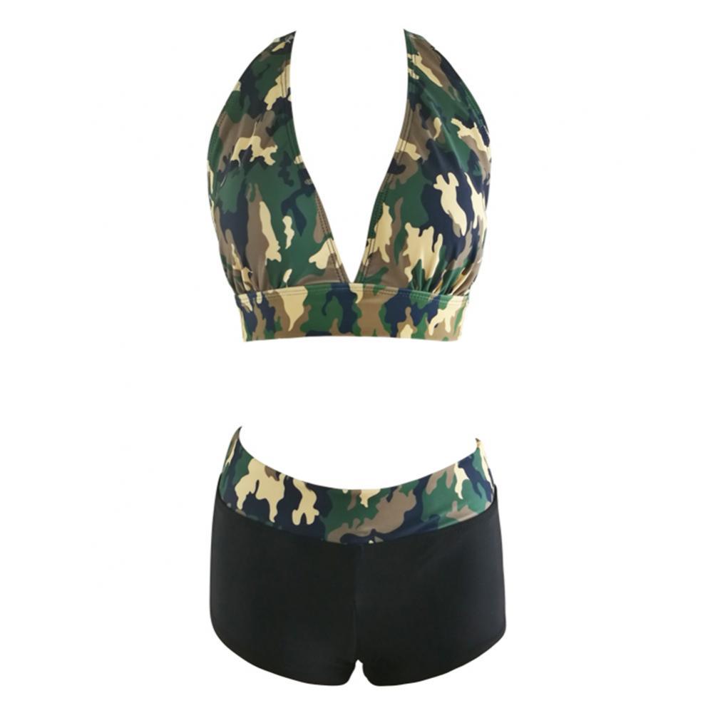 Женское летнее пикантное камуфляжное бикини с открытой спиной, Бандажное бикини, Раздельный купальник, купальники женские 2021