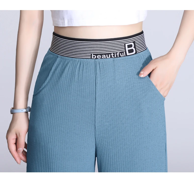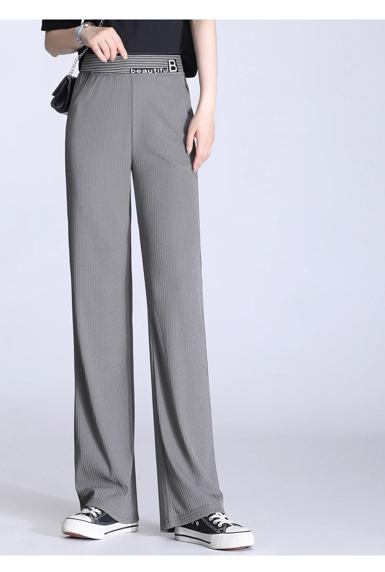 Мягкие удобные женские широкие брюки 2021 с высокой талией повседневные Летние слаксы женские длинные брюки до щиколотки из ледяного шелка женские Слаксы