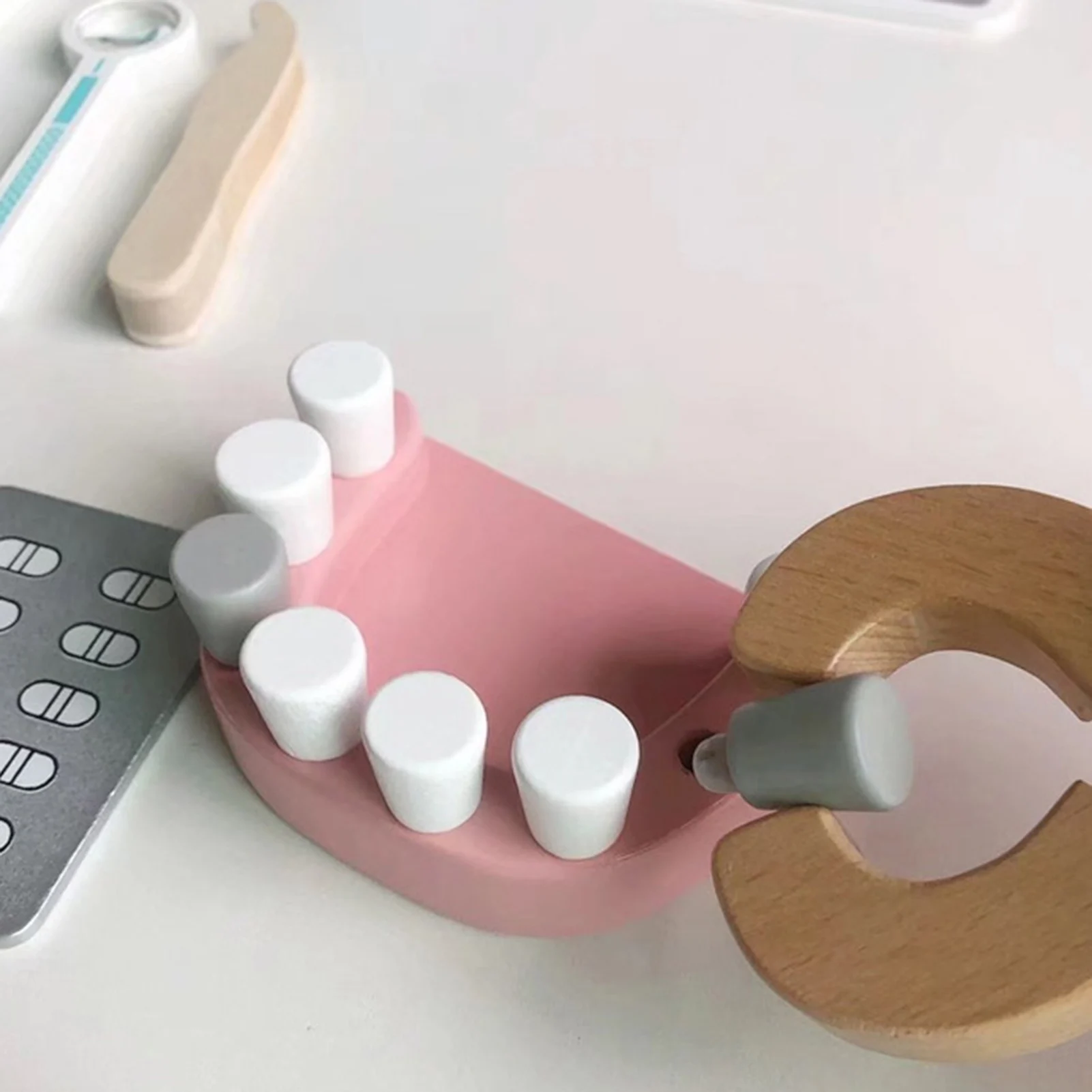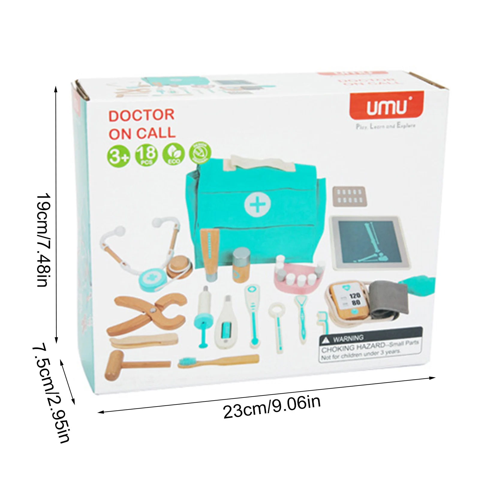 5, 17 штук, реалистичный набор для доктора: деревянный Набор для игры в доктора, аксессуары для стоматолога, включая медицинский ящик со стетоскопом, мазь, медицинский бак, таблетки, зубные формы, плоскогубцы, Скорпион, молоток, зубная щетка, шприц, измеритель артериального давления, КТ-дисплей, 4 инструмента для осмотра, сумочка и зубная нить.