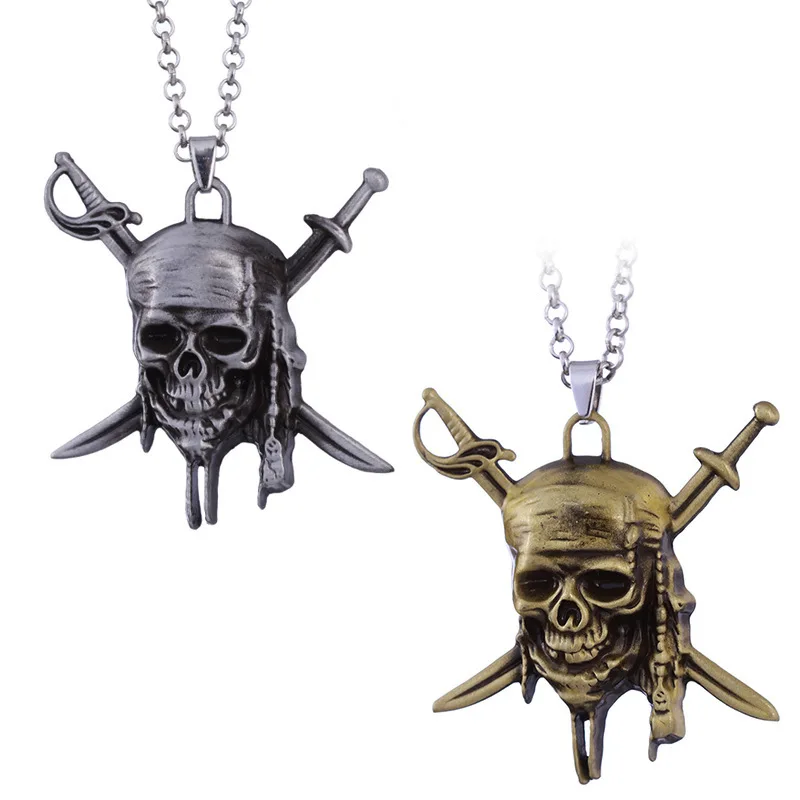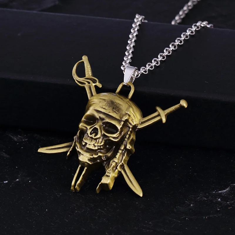 Новое винтажное ожерелье Пираты Карибского моря, позолоченное ожерелье для женщин, длинная цепочка, Череп, панк, подвеска, ювелирные изделия, подарок