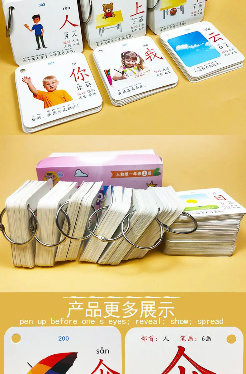 Детский сад китайский Pinyin карты персонажи Hanzi обучения возраста обучения грамотность карта картина просветление двойной ранний