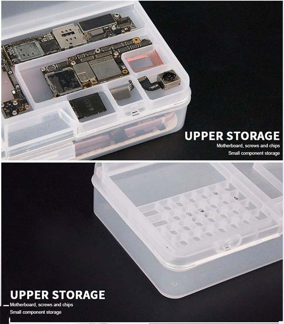 Double-layer classification storage, let you say goodbye to mobile phone dismantling messy. Your others magic box, say goodbye to mobile phone dismantling messy Some people say that this is a luxury duplex designed for mobile phones. But for us, this is a magic box for repair man.