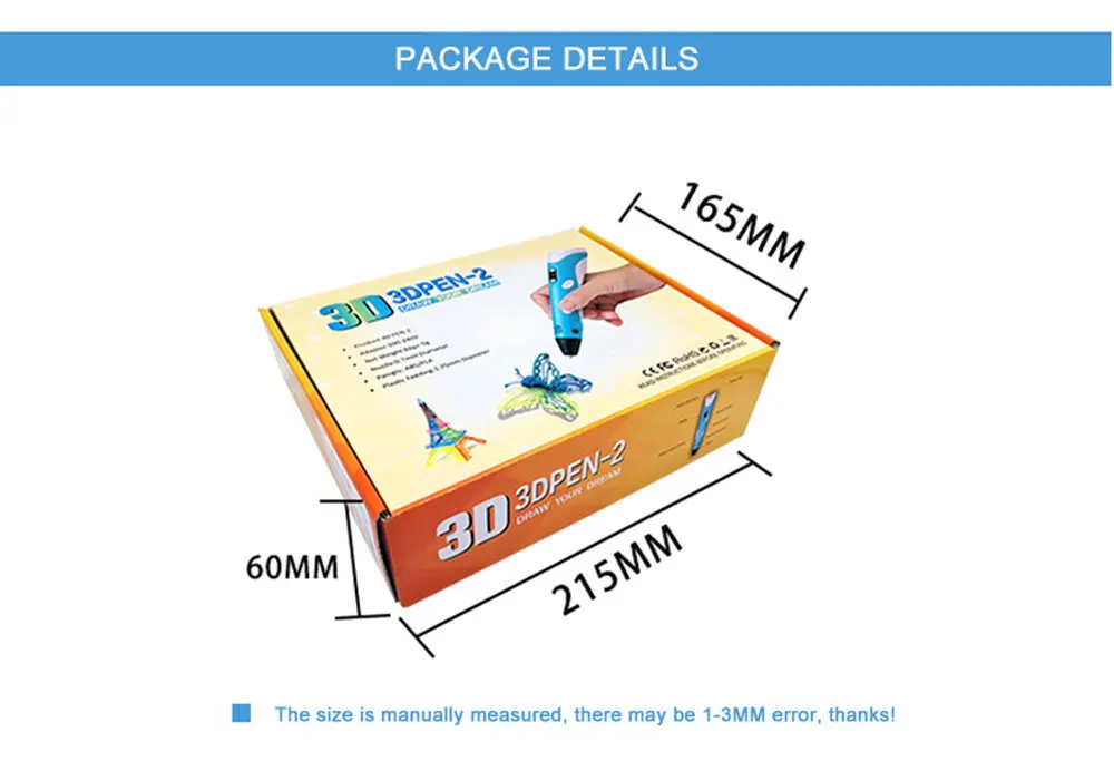 2: Ручка второго поколения может использовать ABS и PLA расходные материалы, но PLA бесцветная, без запаха, Нетоксичная, здоровая и экологически чистая;