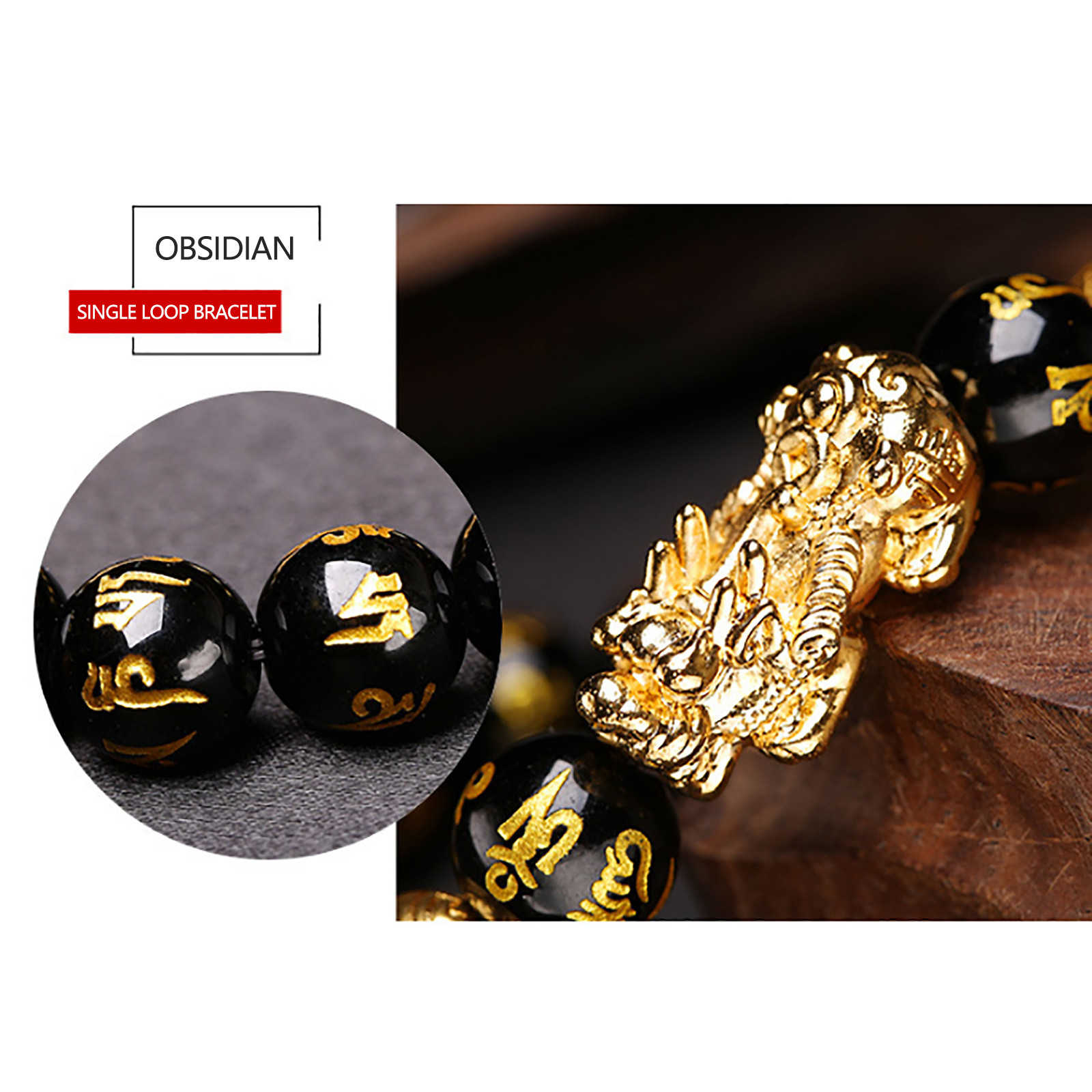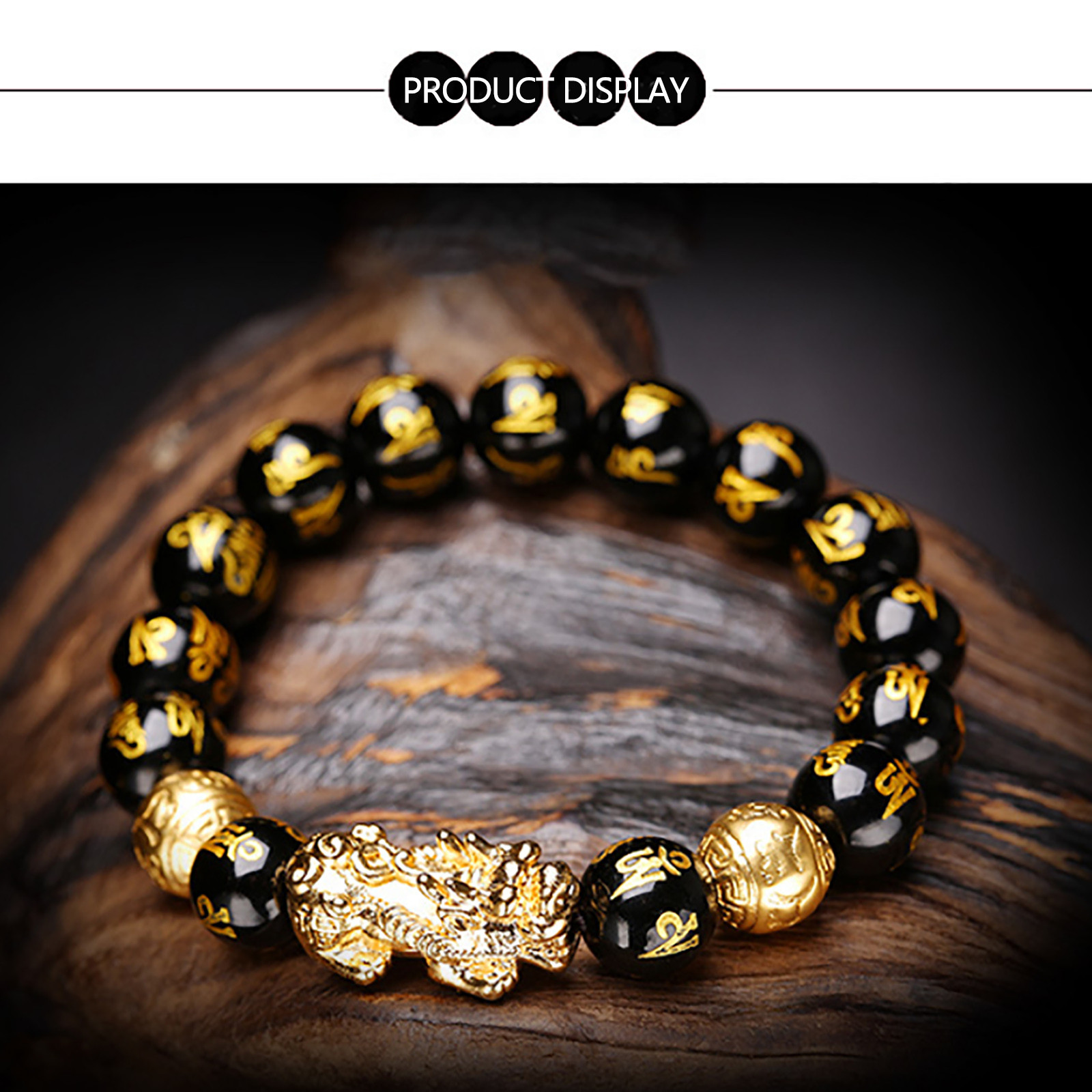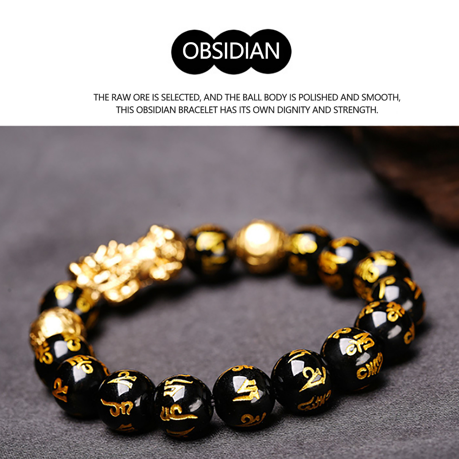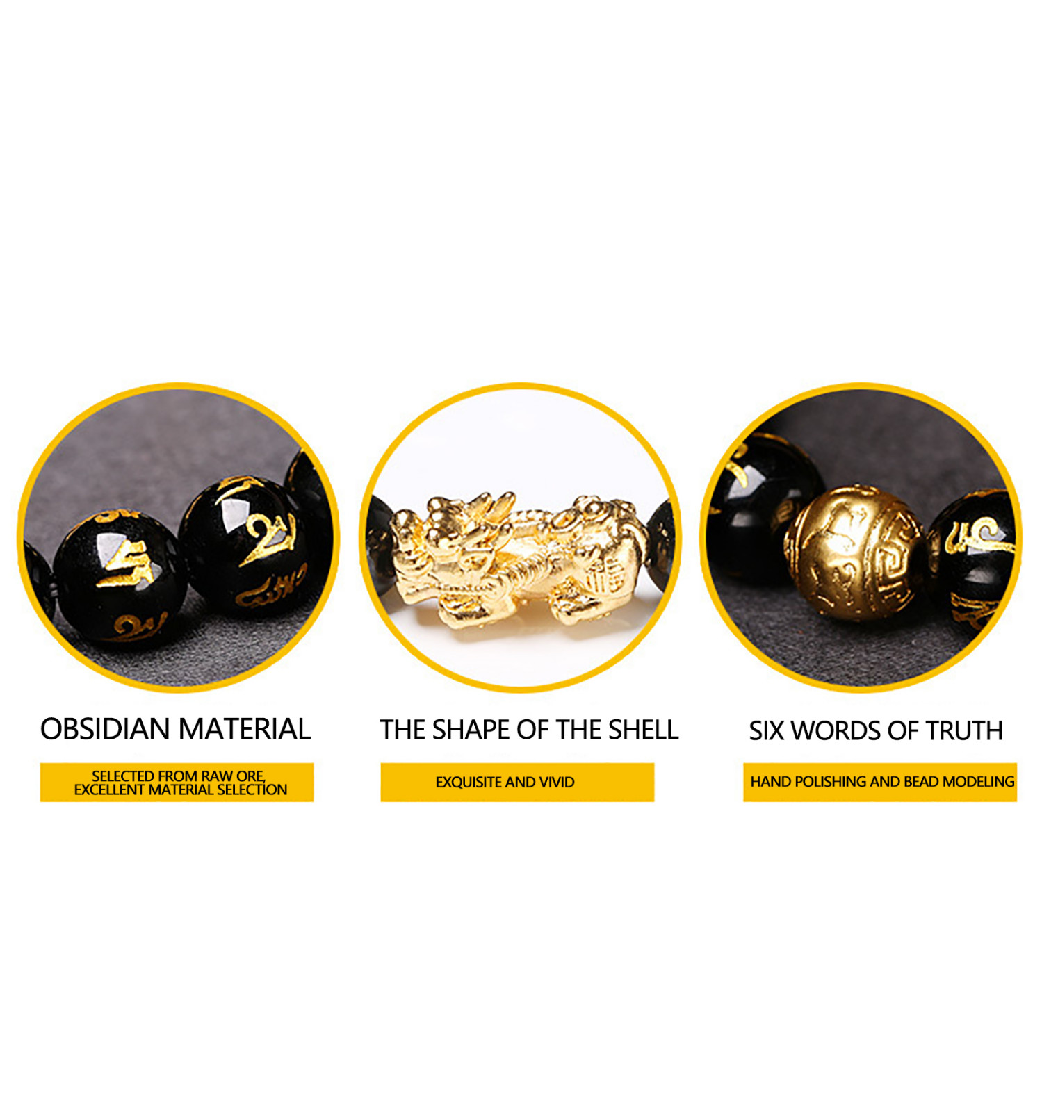 Имитация натурального камня черный обсидиан Pixiu браслет, шесть символов мантра ювелирные изделия