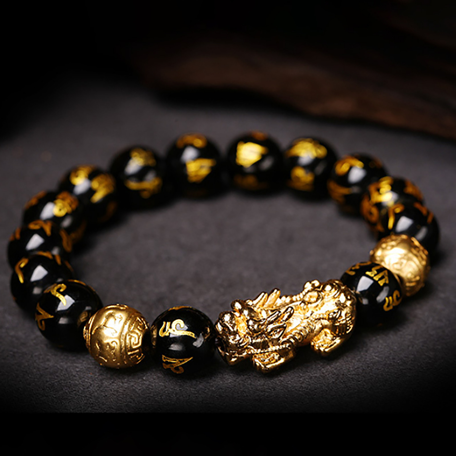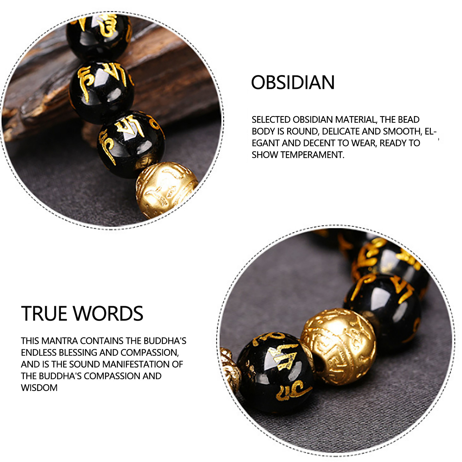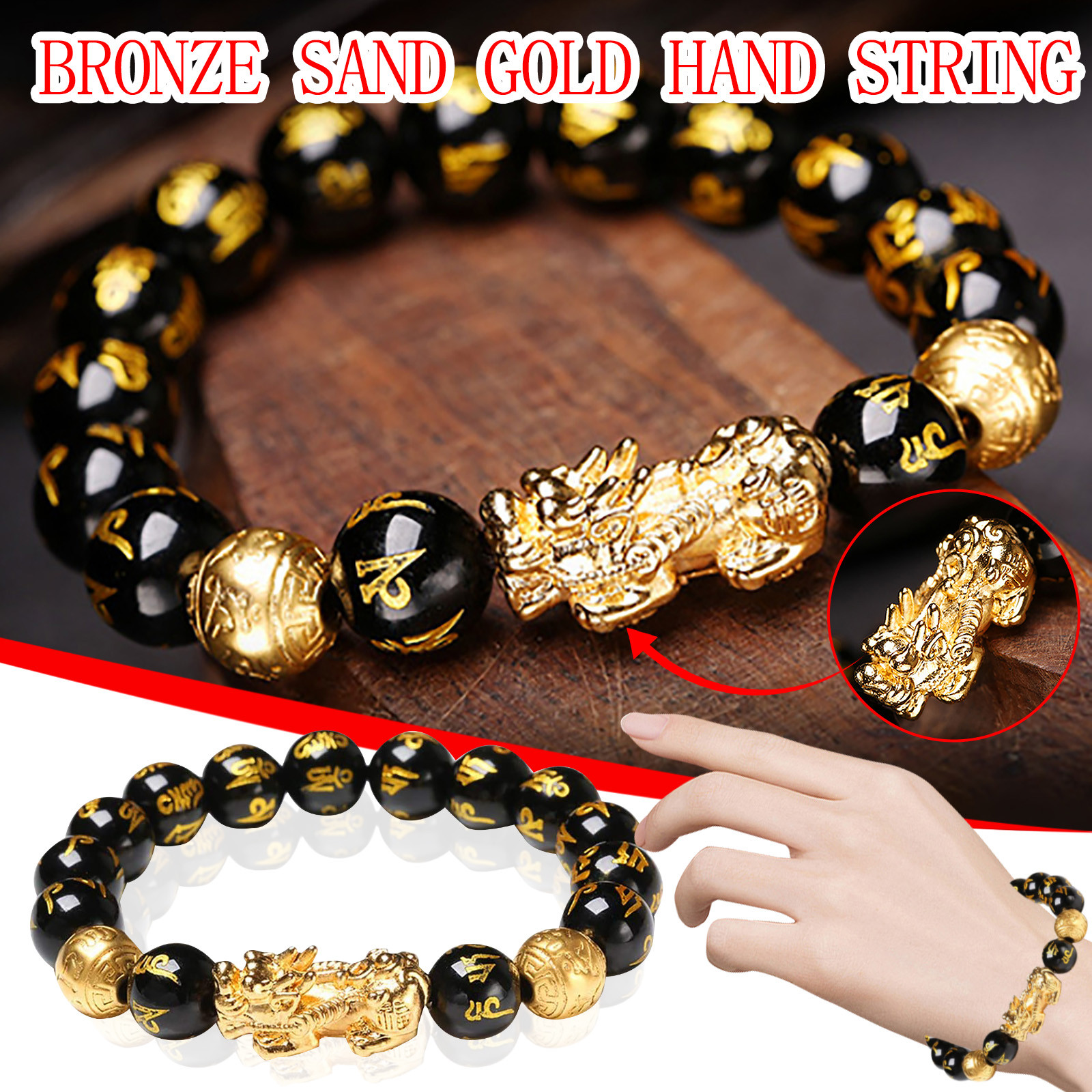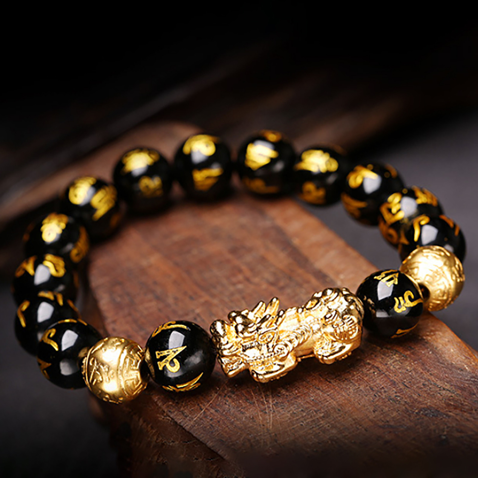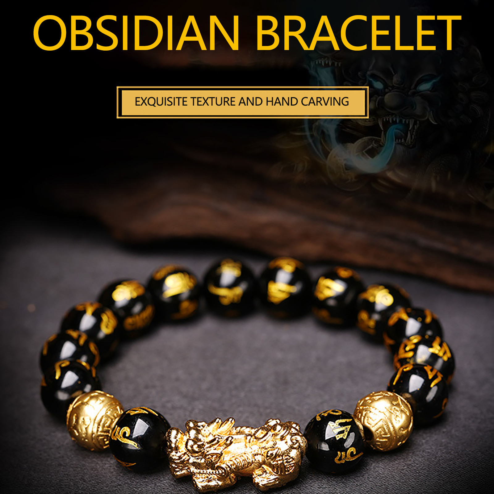 Имитация натурального камня черный обсидиан Pixiu браслет, шесть символов мантра ювелирные изделия