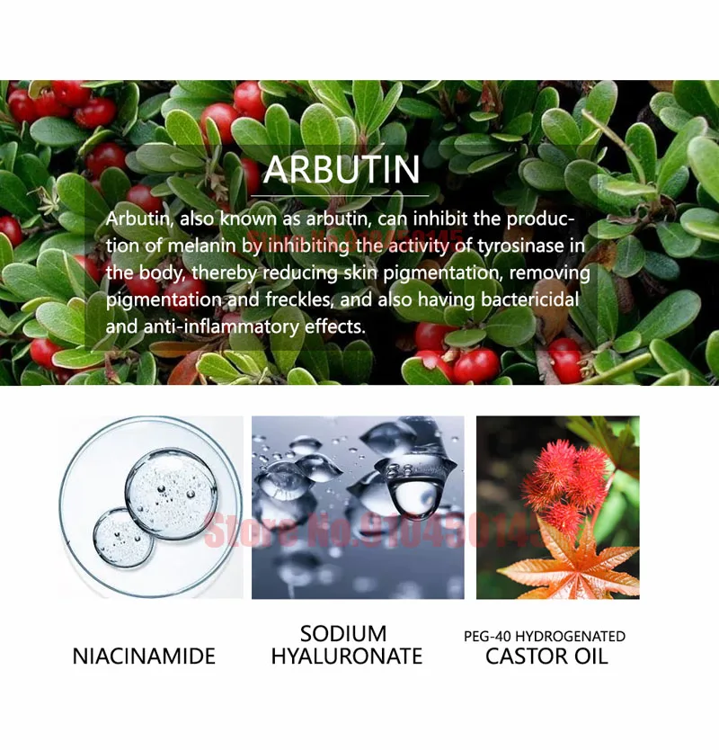 Арбутин, также известный как арбузин, может ингибировать производство меланина, ингибируя активность тирозиназы в организме, тем самым уменьшая пигментацию кожи, удаляя пигментацию и веснушки, А также имеет бактерицидные и противовоспалительные эффекты.