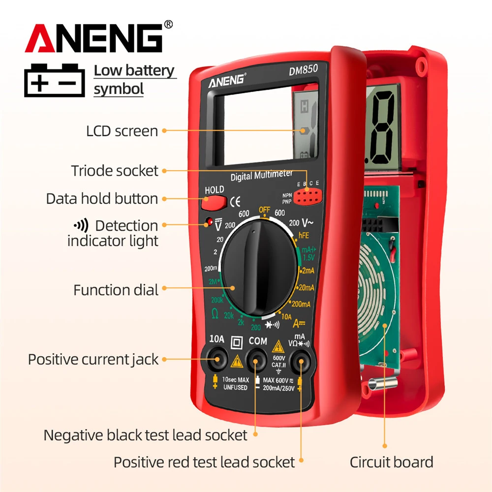 ANENG-Профессиональный DM850 1999 цифровой электрический мультиметр AC / DC автоматический тестер напряжения Ток Ом инструмент для определения температуры