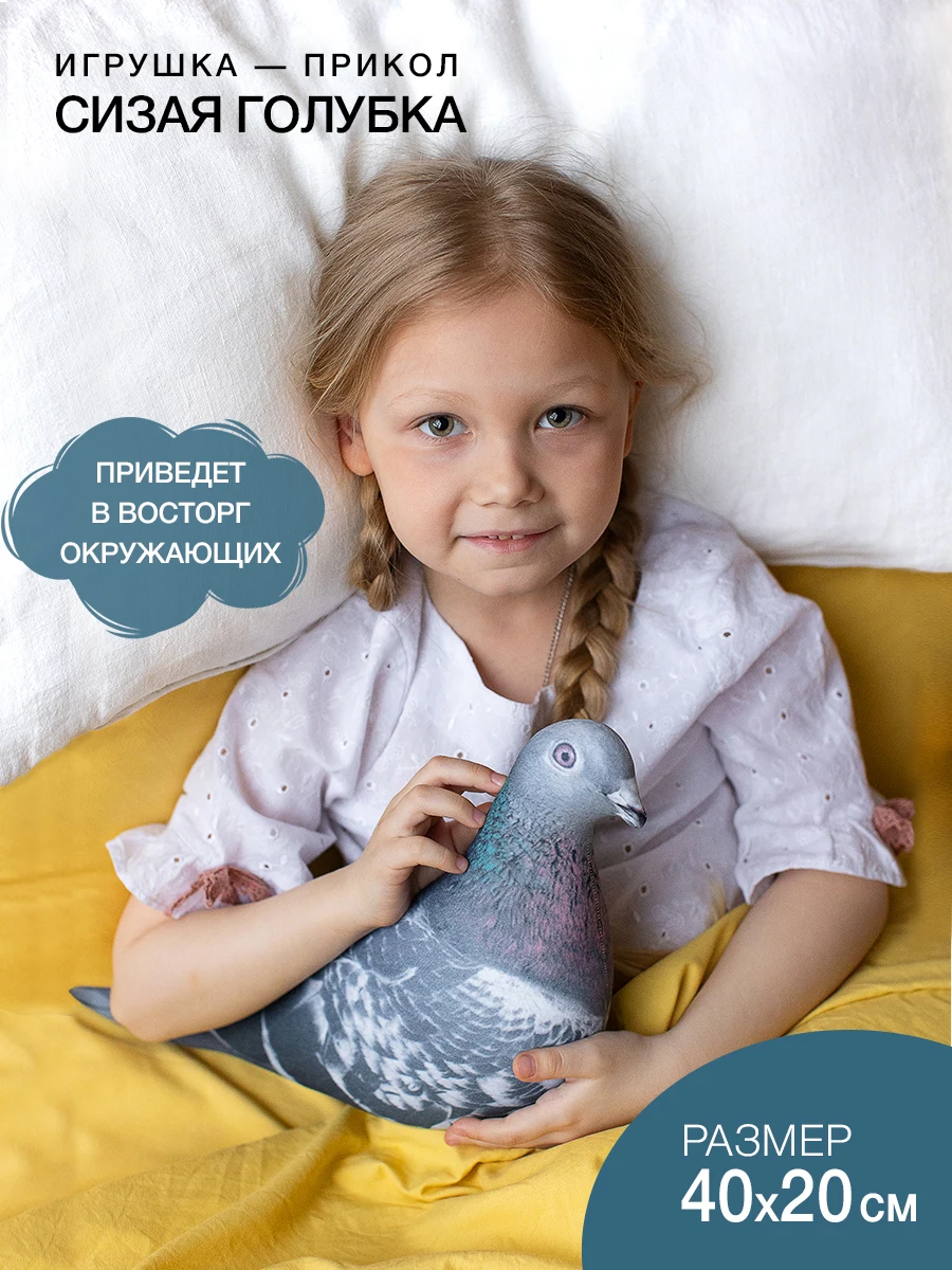 21 марта 2022Спасибо большое за классную мягкую игрушку голубь! Качество и цвет соответствует, очень быстрая доставка! Спасибо продавцу ! Мы в восторге )))