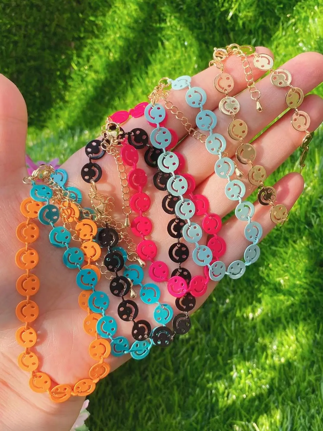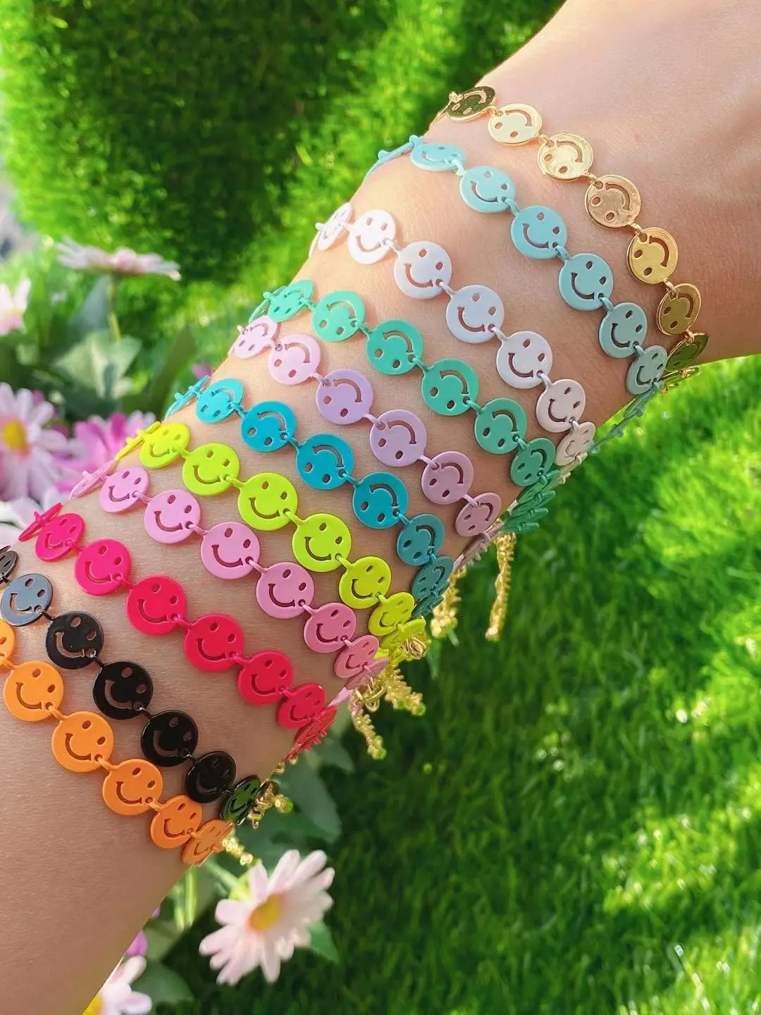 Новинка! Счастливое лицо Улыбающееся латунь эмаль красочные звенья цепи браслет для женщины девушки очаровательные подарочные украшения1. Название>: Браслет2. Размер: Регулируемый