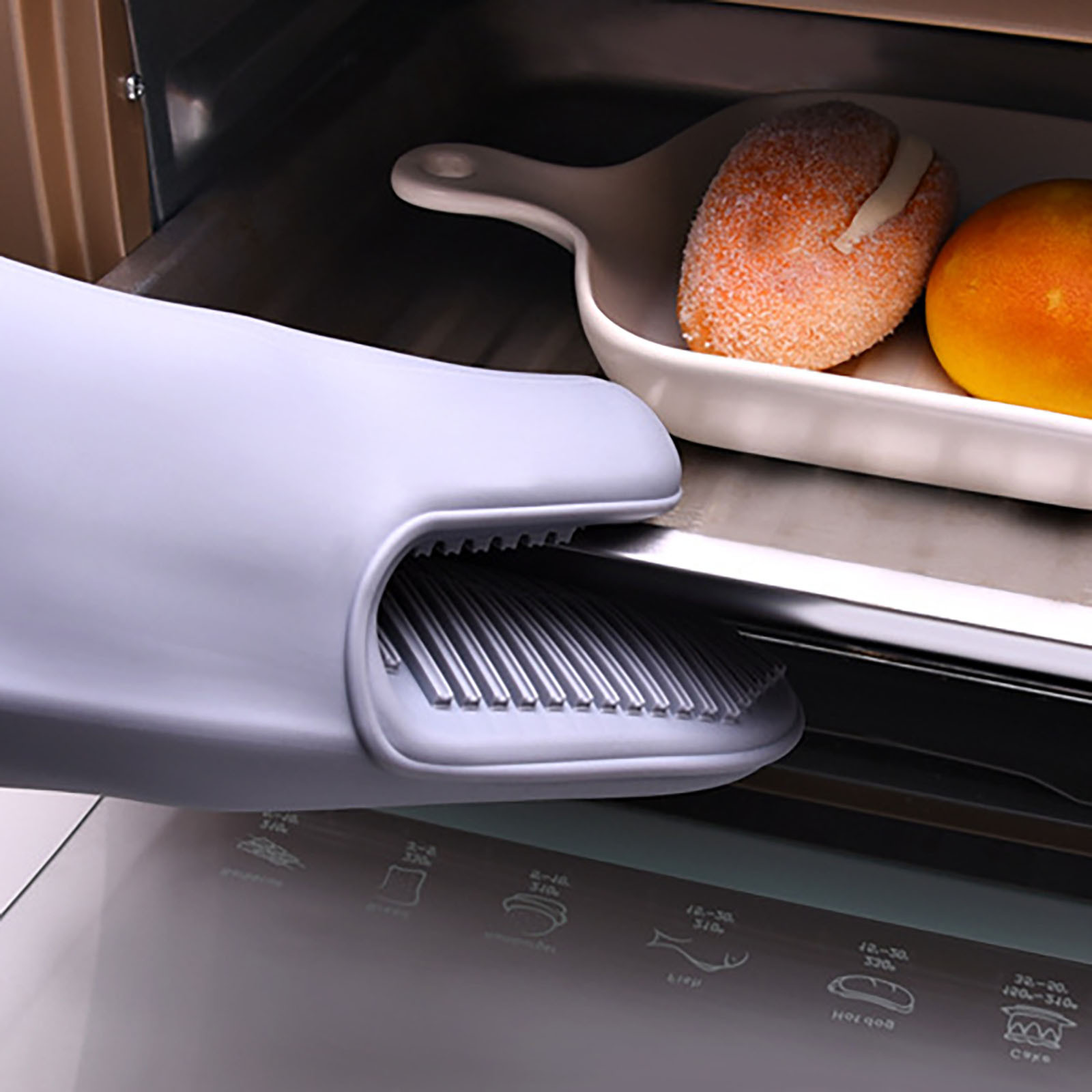 Высококачественные, гибкие и прочные перчатки для духовки, штативы и мини-перчатки, с текстурированной ячеистая поверхность для надежного захвата. Термостойкая температура составляет 260 °C.