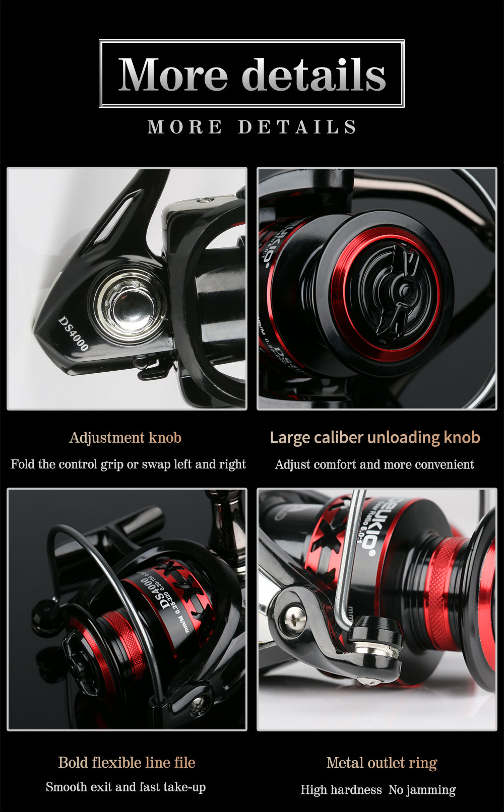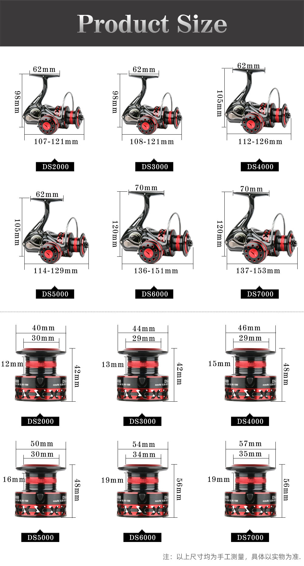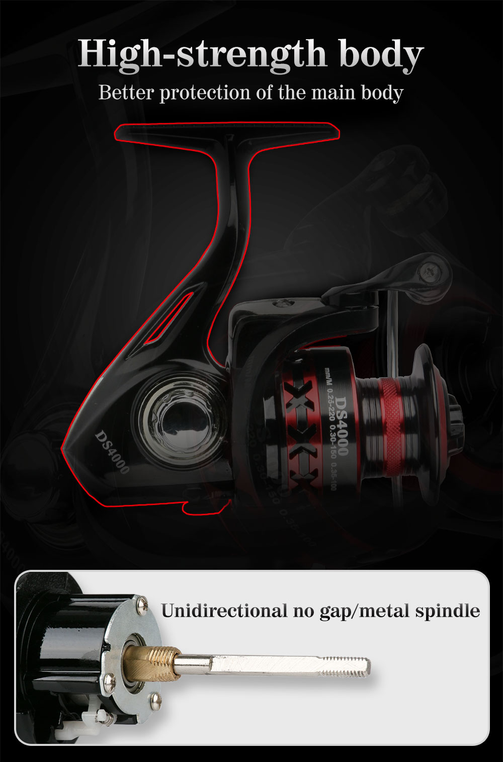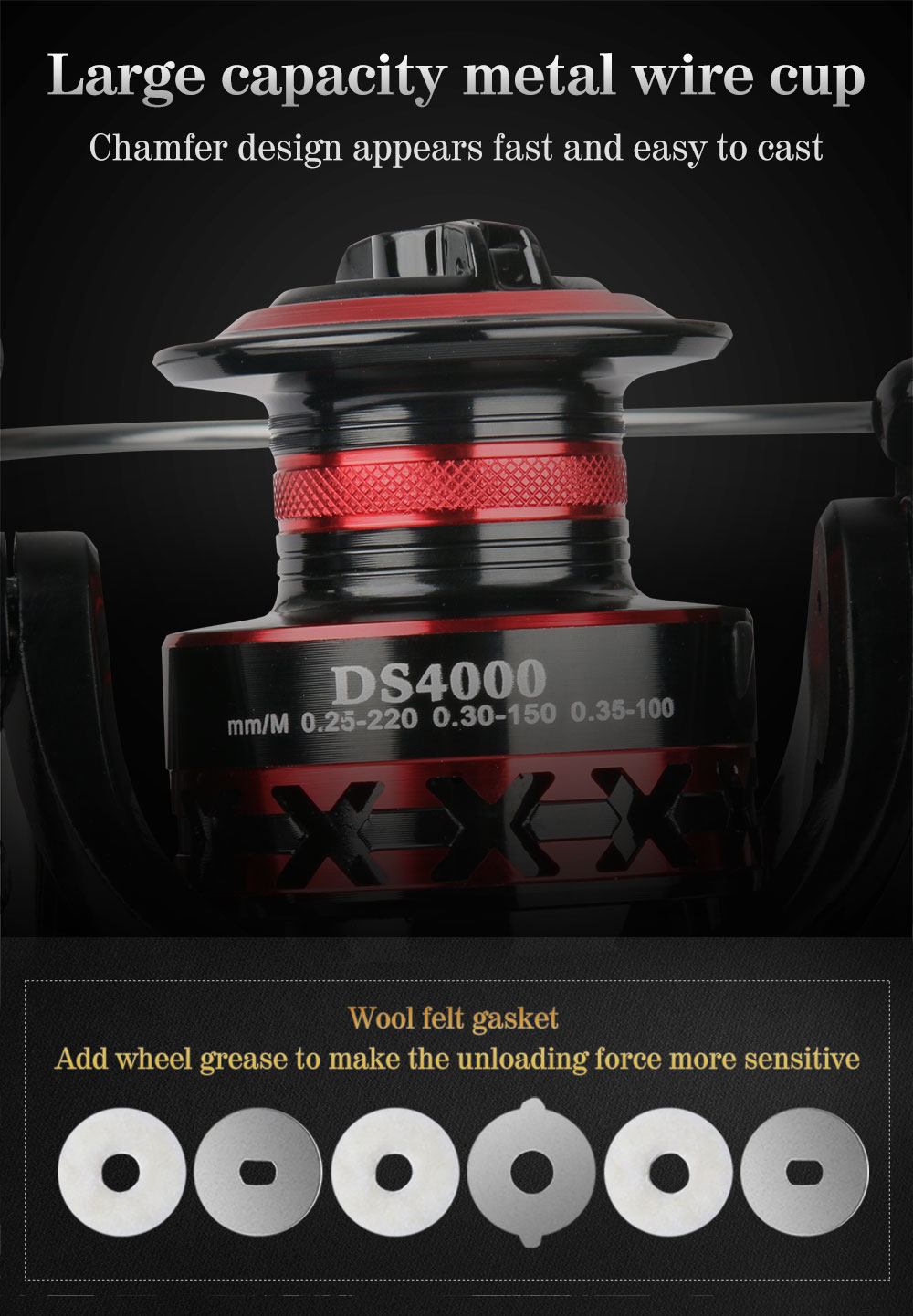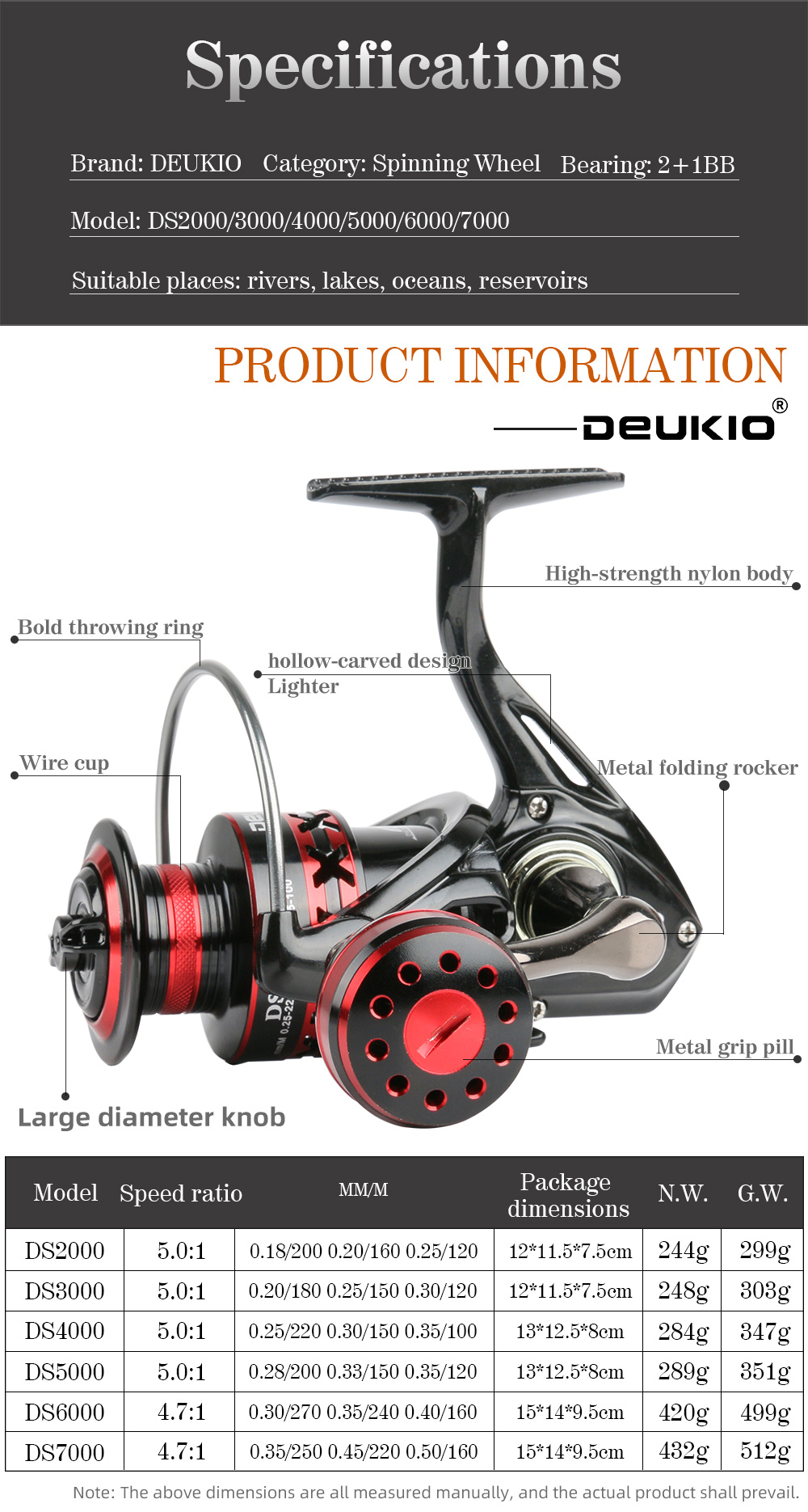 Тип: спиннинговая катушка Шариковый подшипник: 2 + 1BB Подходит для: океана, рек, озер, водохранилищ Соотношение скорости: 5,0: 1/4,7: 1 (Пожалуйста, проверьте таблицу ниже) Другие: провод capicity, посылка размера, N.W., Размер катушки G.W., пожалуйста, проверьте таблицу ниже Особенности: 1. Металлическая ручка, CNC процесс 2. Красивый черный, красный цвет 3. Левый/правый сменный 4. Смелое бросание кольца, не повреждает провод 5. Ручка большого диаметра 6. Большая емкость проволочной чашки, с шерстяной войлочной прокладкой 7. Однонаправленный шпиндель без зазора