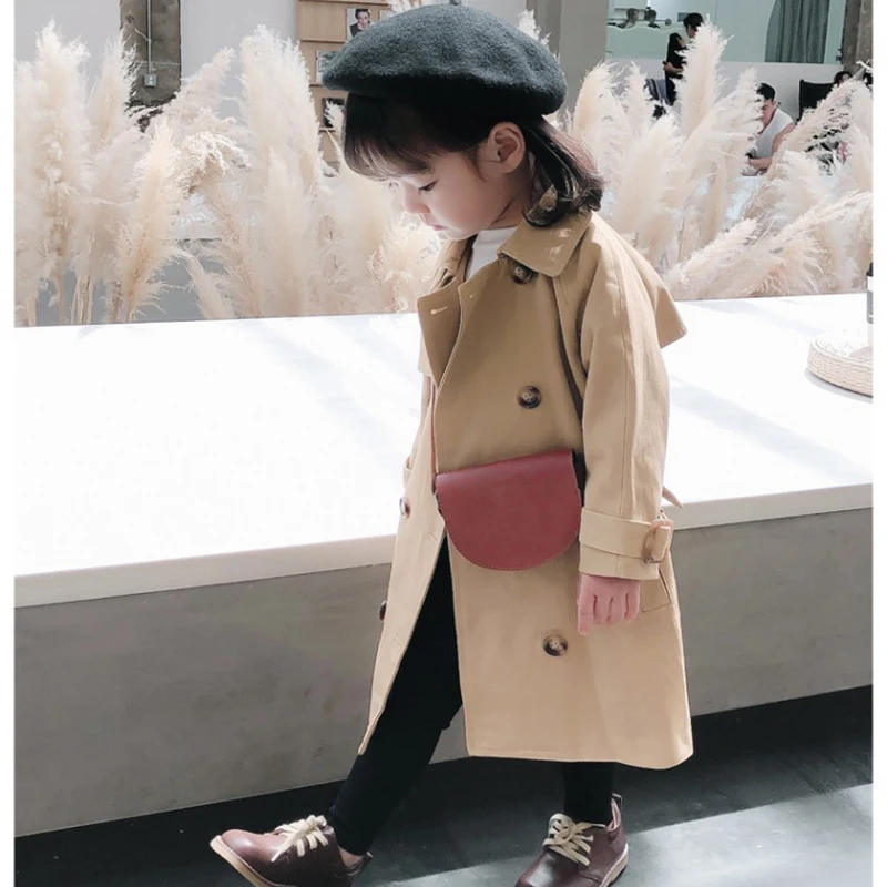 Детский однобортный тренчкот для девочек Cultiseed цвета хаки с бантом вечеринок |