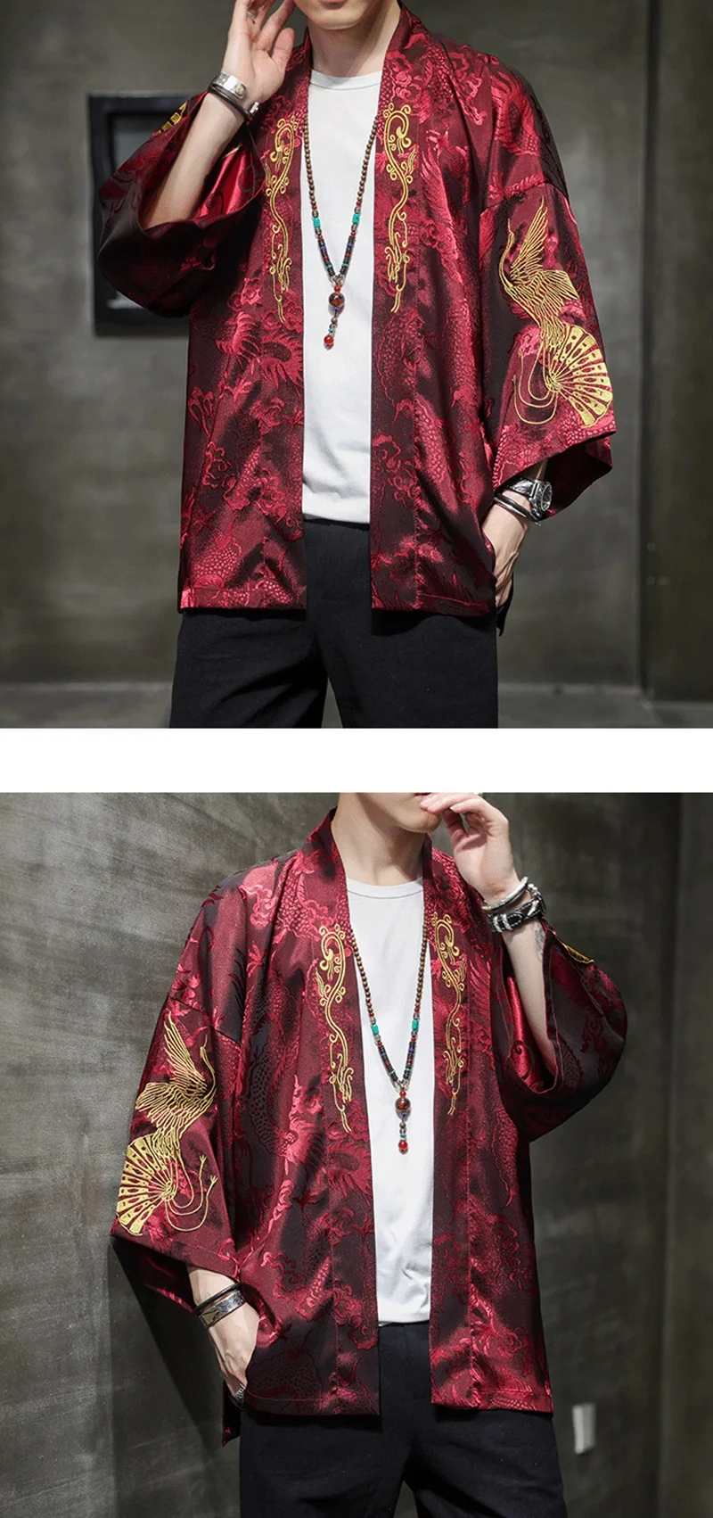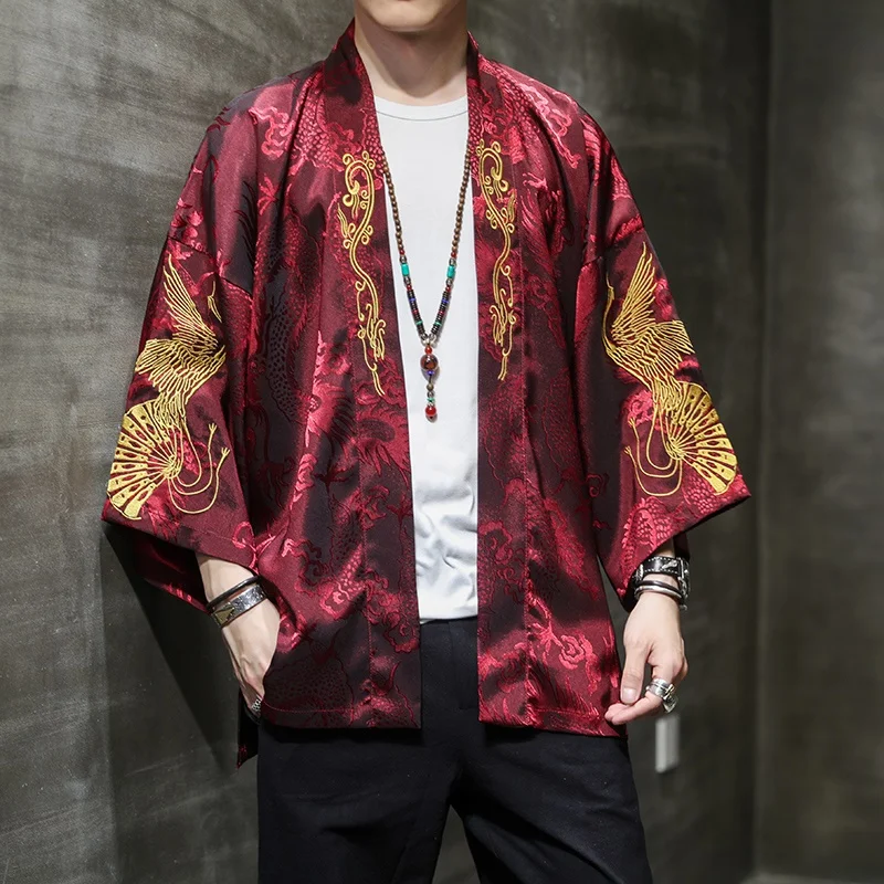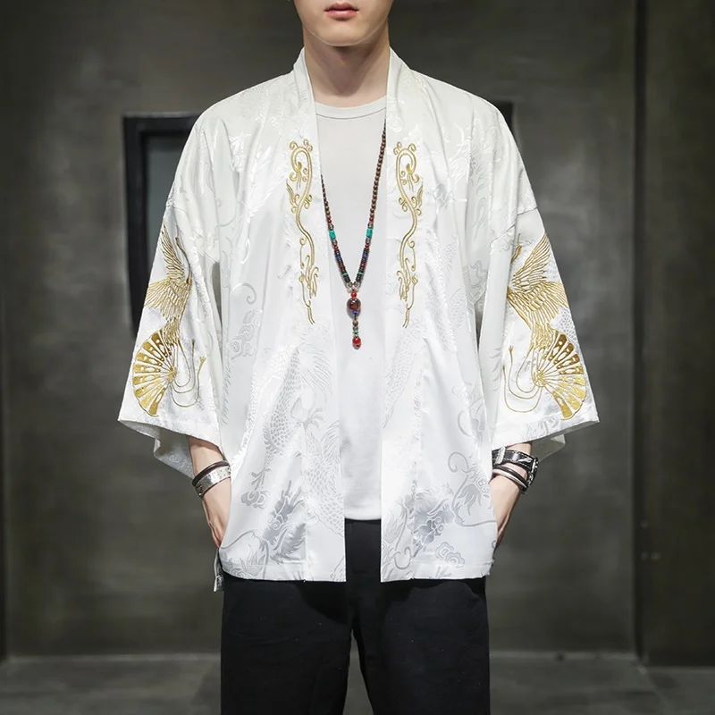 Yukata Haori Japanese Dragon Kimono Cardigan Men Samurai Costume Asian Clothes Kimonos Jacket Mens Shirt V2033 | Тематическая