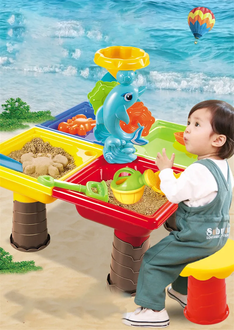 Креативная Детская летняя настольная коробка с песком и водой для маленьких детей, детские пляжные игрушки с водяным колесом для детей, детская игрушка для пляжа, подарки для детей