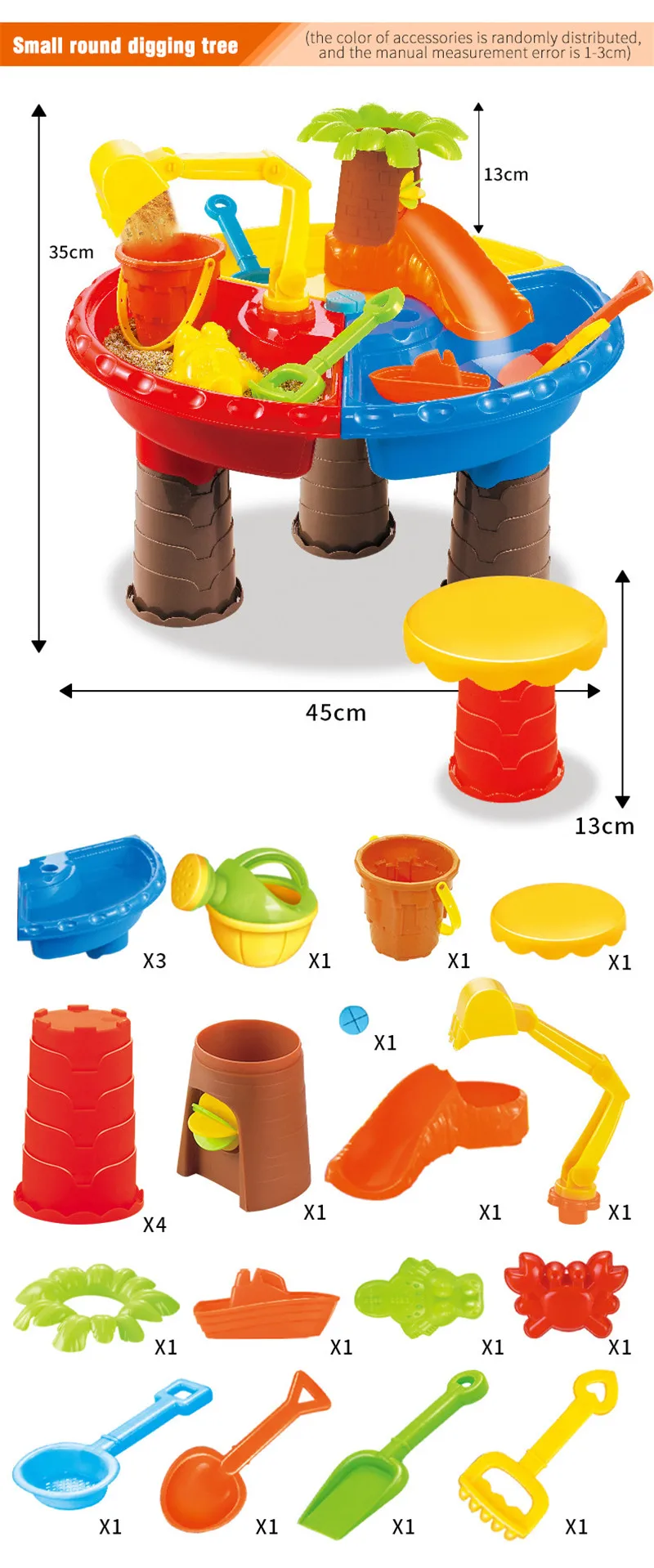 Характеристики: Тип: песочный и водный стол Материал: АБС-пластик Цвет: как показано Вес: 1300 г Идеально подходит для пляжа, песчаного пляжа, моря, бассейна, ванны, сада и т. д. Размер: 45x45x35 см (прибл.)/17,71 "x 17,71" x 13,78" Вес посылка: 36x23x2 3 см/14,17 "x 9,06" x 9,06" Примечание: Из-за того, что в светильник экране монитора фактический цвет товар точно такой же, как и цвет изделия на фото может быть s светильник ly отличается из-за характеристик монитора компьютера. Посылка включает: 1 х Набор песка и воды Описание: 【 2 в 1 стол toy】стол с водяным песком/стол для учебы, он работает как стол с песком и стол для учебы. Дети могут наполнять его водой, чтобы наслаждаться водным весельем и учебой 【Легко монтируется: Этот песочный водный стол легко собирается, просто защелкивайте 4 ножки в место. Дети могут даже самостоятельно создать этот стол для занятий. Также легко разобрать для хранения. Может быть доставлен на пляж или на задний двор для игр на свежем воздухе в летний праздник 【 Внутри и снаружи 】: стол можно брать внутрь и заполнять другими материалами в качестве сенсорного стола. Кроме того, это не слишком тяжело для детей, чтобы носить на заднем дворе, чтобы иметь удовольствие от воды. Водяной стол для детей удерживает достаточно воды, и дети будут наслаждаться заливкой и брызгами воды в целом. 【Правильное прилегание: триггер для повышения гибкости пальцев вашего ребенка, стимулирует любопытство ребенка, тренирует ладонь вашего ребенка [легко переносить]: идеально подходит для пляжа, песчаного пляжа, морского побережья, бассейна, сад, ванна и т. Д.