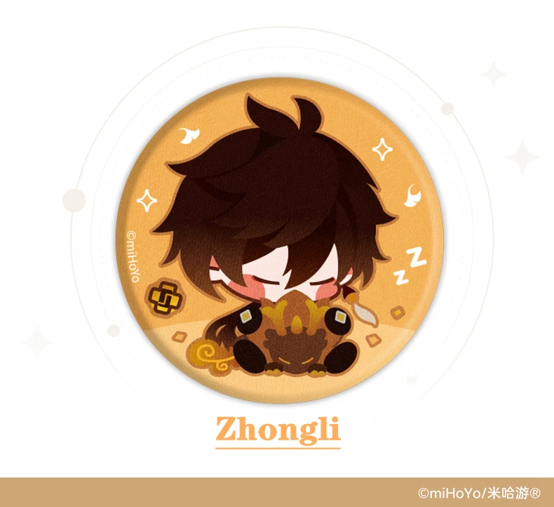 Rock King Zhong Li jeu Genshin Impact avaler baleine Tartaglia Cosplay bricolage accessoires Anime projet en peluche Badge fer blanc décoration Halloween