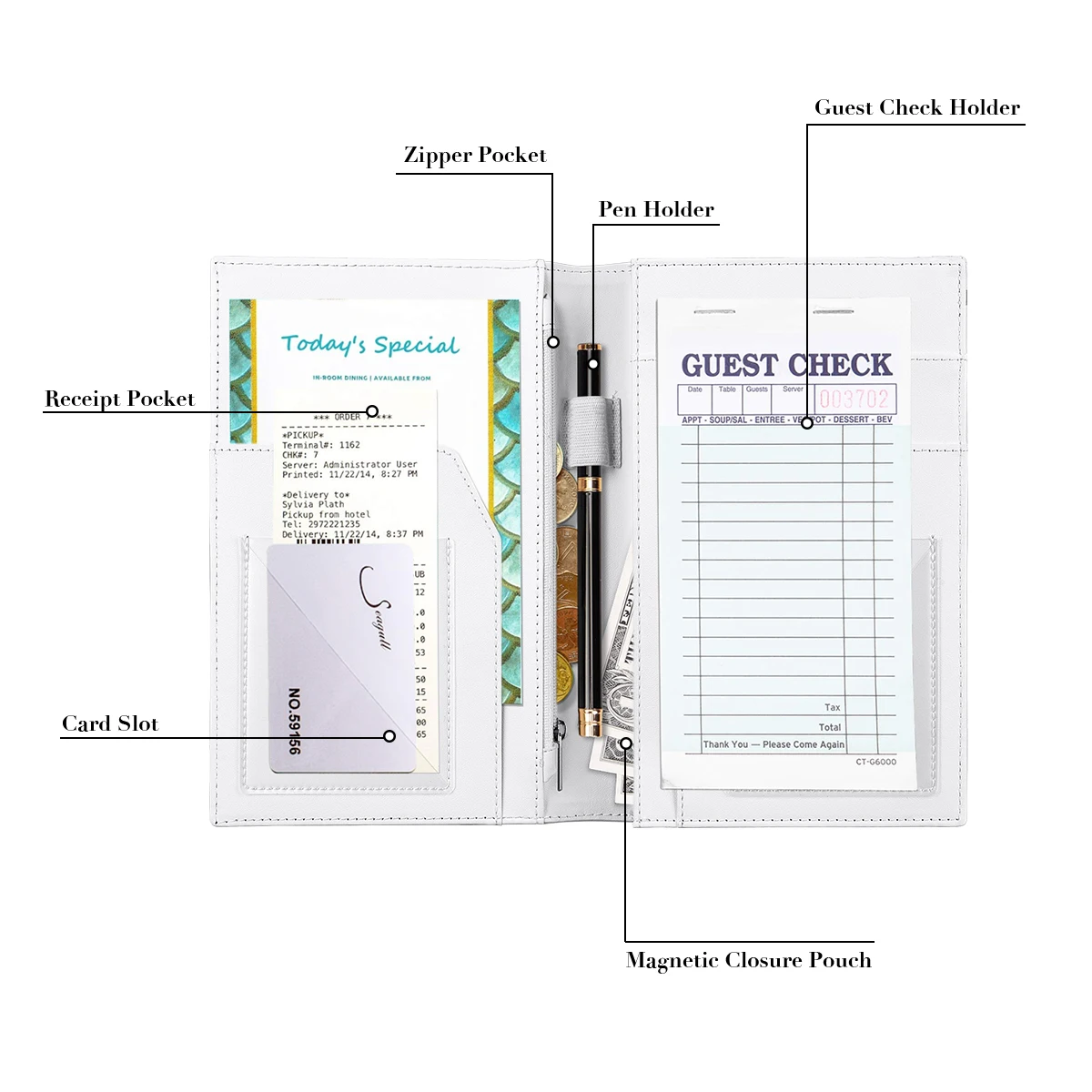 Серверная книга для официанта мраморная сумка с держателем для ручки папка для проверки ресторана отеля Кофейня Чековая книга Карманный ID держатель чековый Органайзер