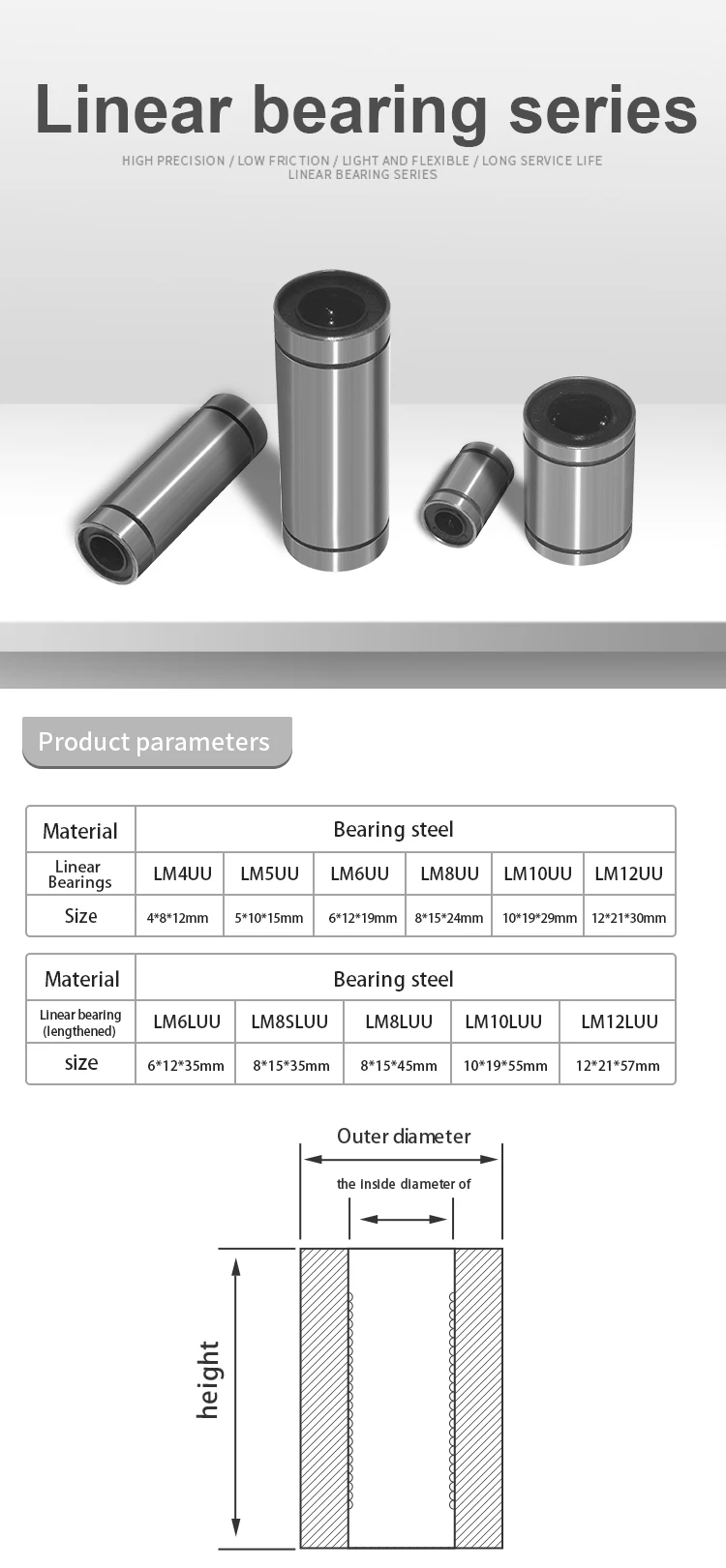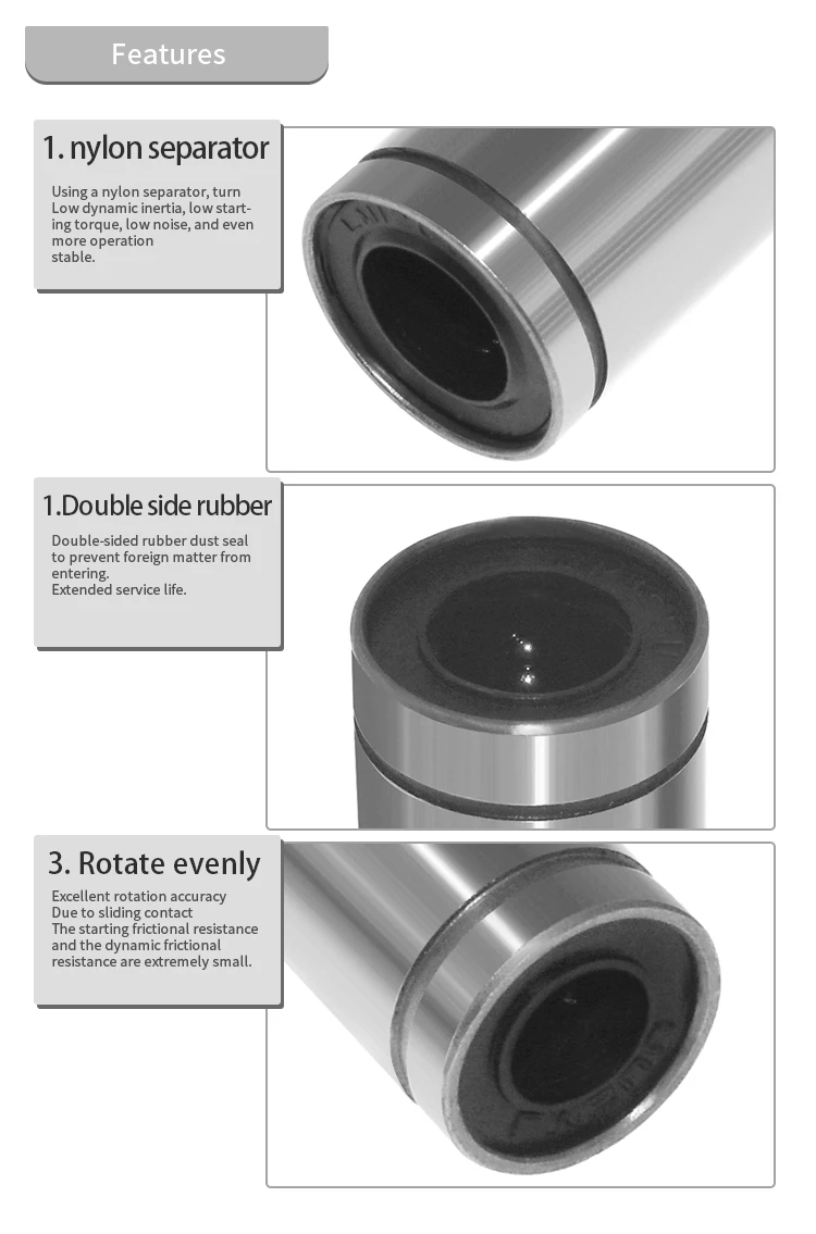 1. LM6LUU 6*12*35;2. LM8LUU 8*15*45;3. LM10LUU 10*19*55;4. LM12LUU 12*21*57;5. LM8SLUU 8*15*356. LM4UU 4*8*127. LM5UU 5*10*158. LM6UU 6*12*199. LM8UU 8*15*2410. LM10UU 10*19*2911. LM12UU 12*21*30Примечания к покупке:1. Как экономичная Авиапочта Yanwen, так и обычная небольшая посылка Почта Китая Plus не имеют информации для отслеживания, поэтому нет ограничений по времени. Мы рекомендуем использовать заказную авиапочту Почта Китая или стандартную доставку AliExpress.2. Мы не принимаем возврат средств за незначительные повреждения (изгиб штифта, небольшое истирание экрана и т. Д.) во время транспортировки материала, и товар может иметь погрешность в 1 мм., Не влияет на нормальное использование. Если вы возражаете, пожалуйста, не покупайте.3. Некоторые продукты предоставляют техническую поддержку, если вам нужна помощь, пожалуйста, свяжитесь с нами, мы сначала разберемся с вашим сообщением.4. Если у вас есть какие-либо вопросы о товаре, пожалуйста, свяжитесь с нами, прежде чем открывать спор. Мы дадим вам наиболее удовлетворительный ответ.5. Мы предоставляем каждому клиенту товары хорошего качества, очень выгодные цены и самое искреннее обслуживание. Мы надеемся получить ваш хороший отзывы в.