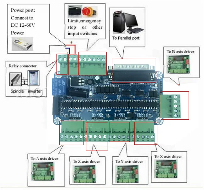 1. Полная поддержка MACH3, KCAM4, EMC2 и Поддержка параллельного порта для управления компьютерным программным обеспечением хоста;