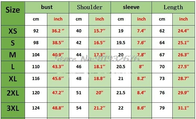 2. Пожалуйста, сравните ваш размер с нашей таблицей размеров перед покупкой.