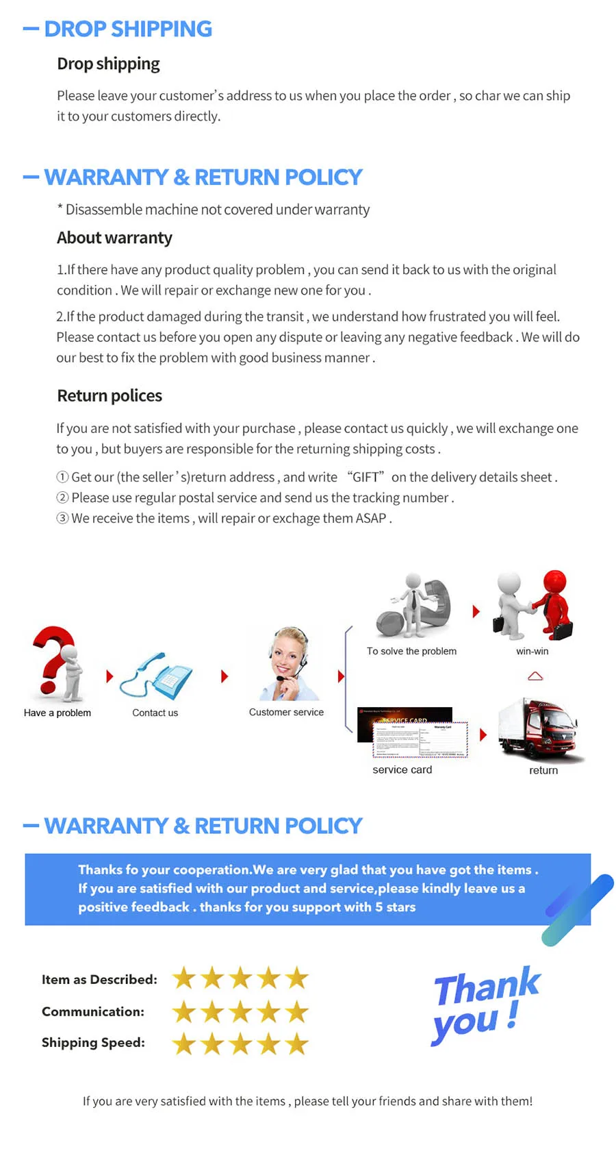 2. Пожалуйста, проверьте товар вовремя после получения товара. Если у вас есть какие-либо вопросы, пожалуйста, сообщите нам вовремя, чтобы мы могли справиться с ними вовремя!