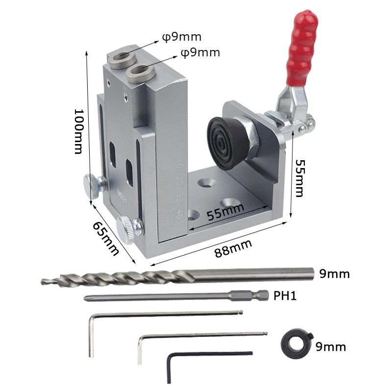 Набор приспособлений для карманных отверстий является незаменимым инструментом для домашнего деревообработки DIY. Он подходит для профессионального деревообработки и домашнего использования.