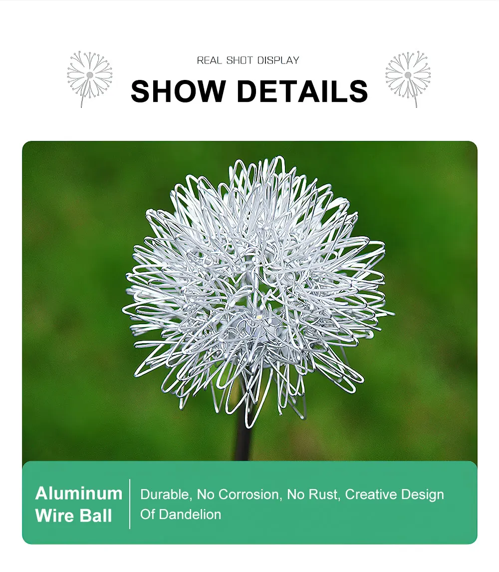 Одуванчик Солнечный свет выдерживает все виды погоды, включая сильный дождь и снег, не беспокоясь о ржавчине и выцветании.