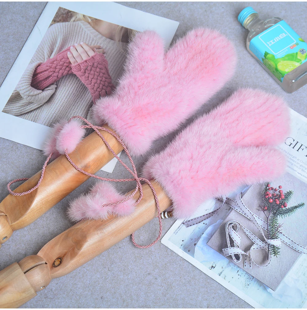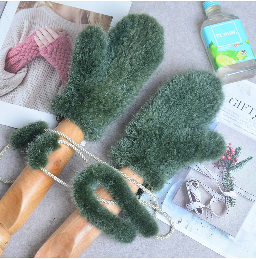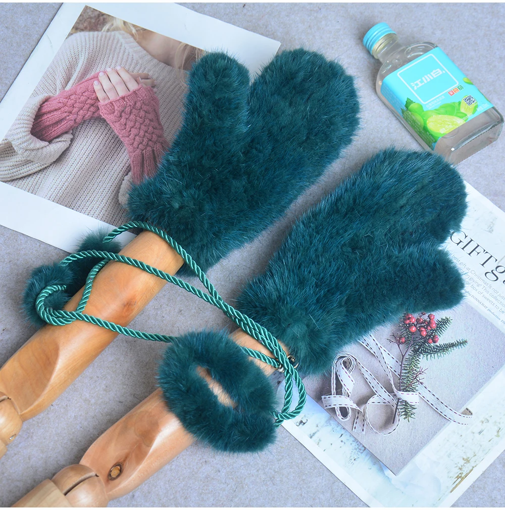Винтажные вязаные перчатки с рисунком Санта-Клауса женские утепленные зимние