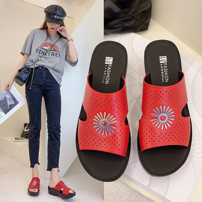 Сандалии женские леопардовые плоская подошва Повседневные Удобные Пляжные