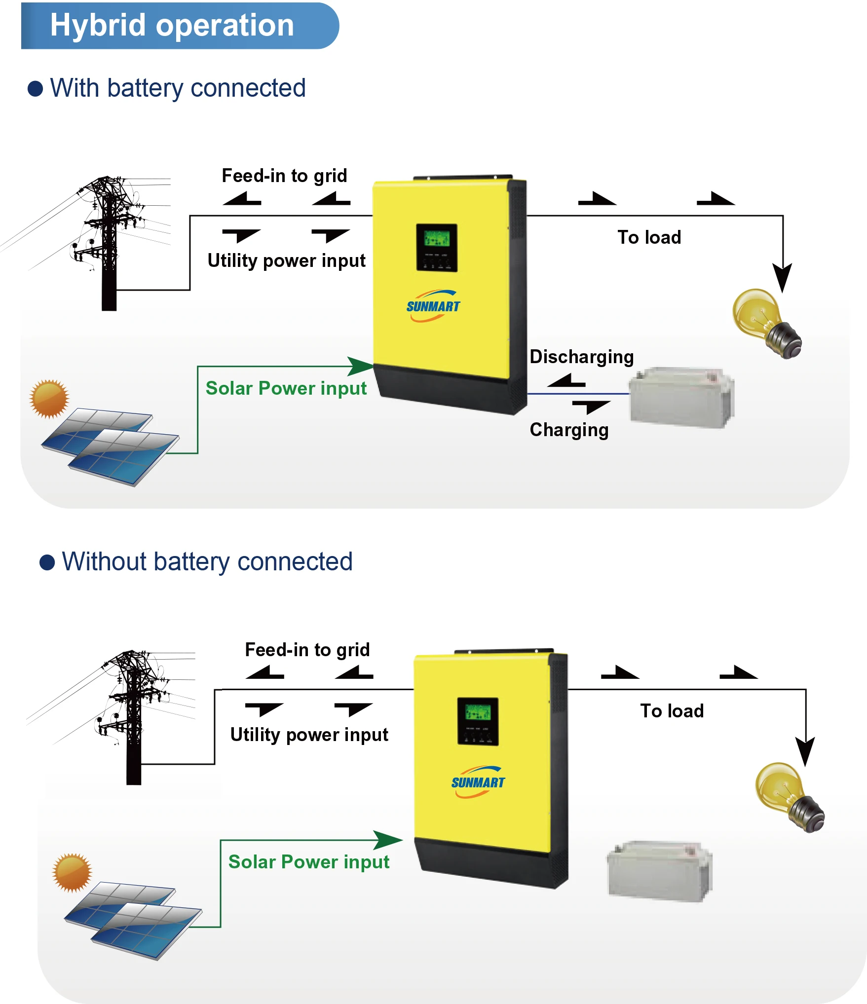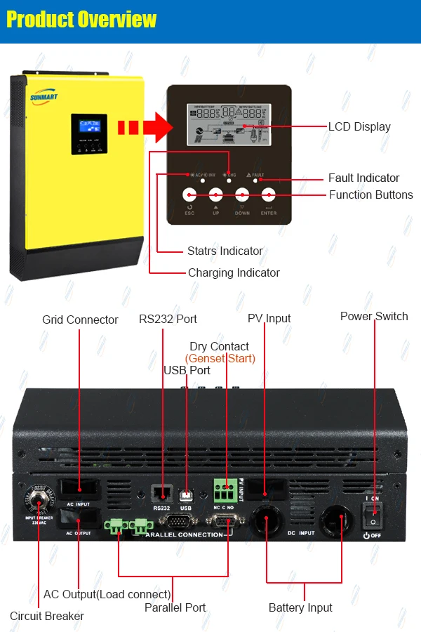 • Программируемый приоритет питания для PV, батареи или сетки