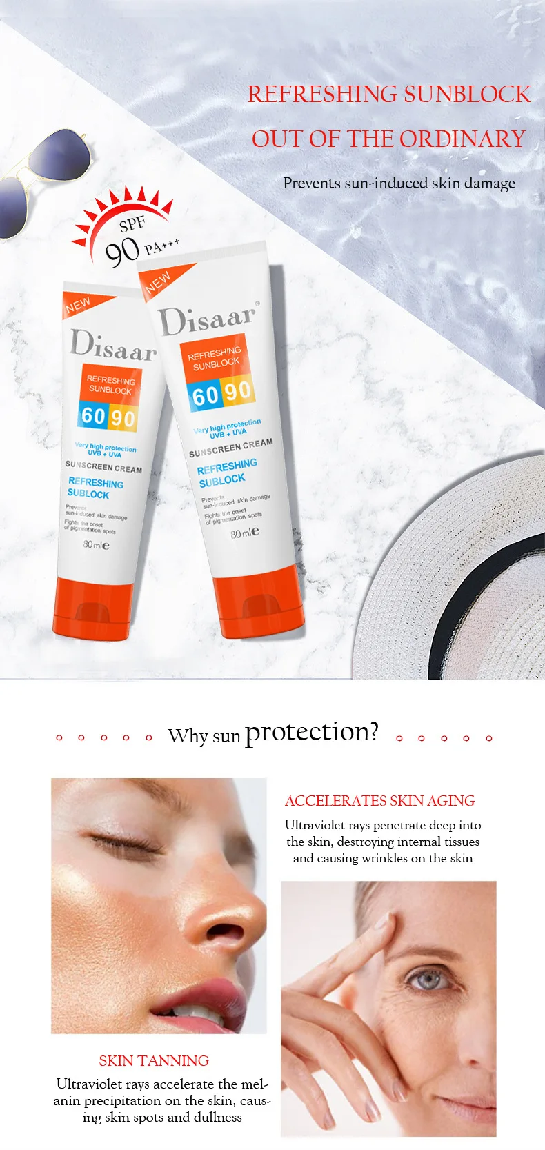 Солнцезащитный крем Disaar Spf 90 + + увлажняющий солнцезащитный крем для лица предотвращает повреждение кожи отбеливающий крем для лица 80 г