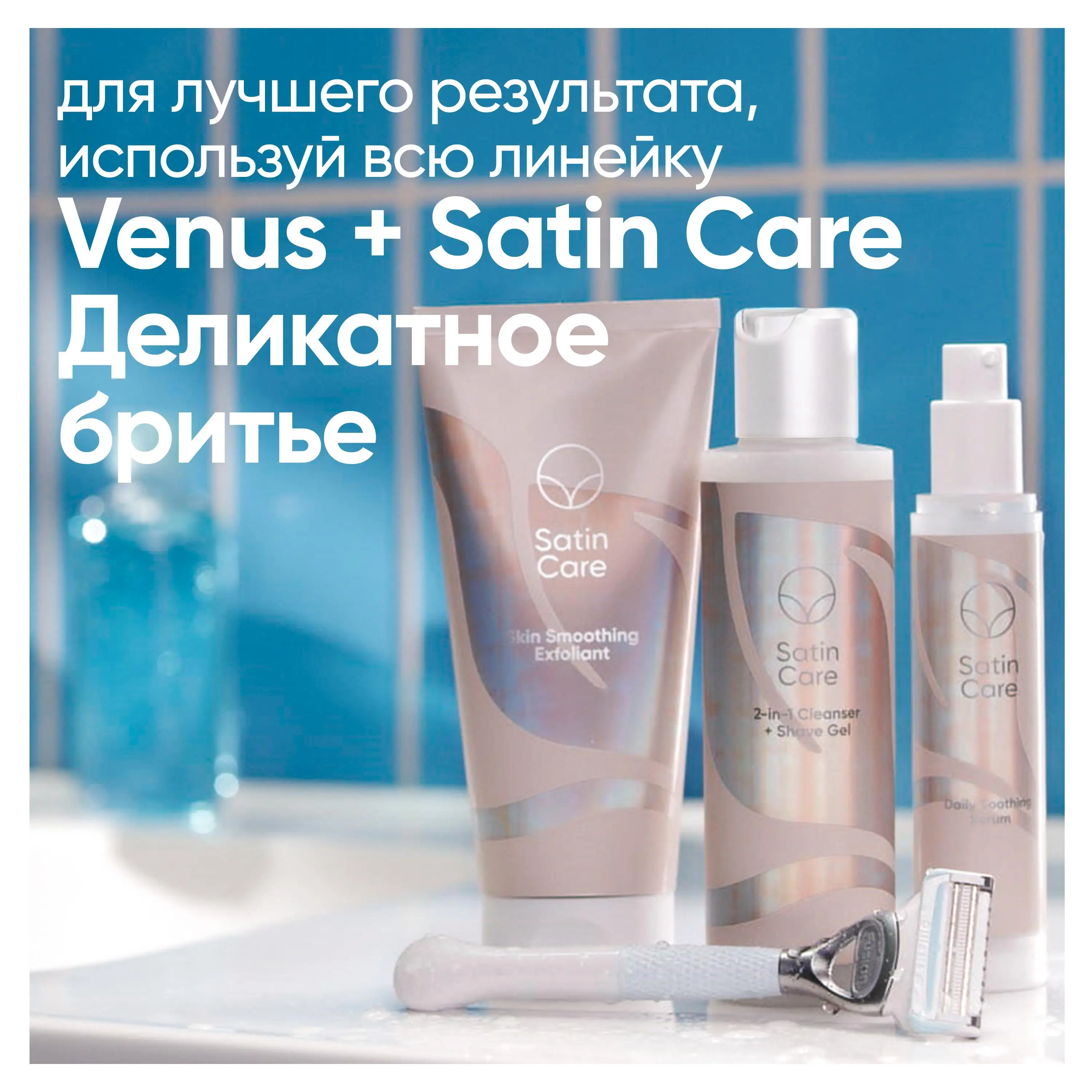 - Для достижения лучших результатов используй всю линейку средств Venus и Satin Care Деликатное бритье.