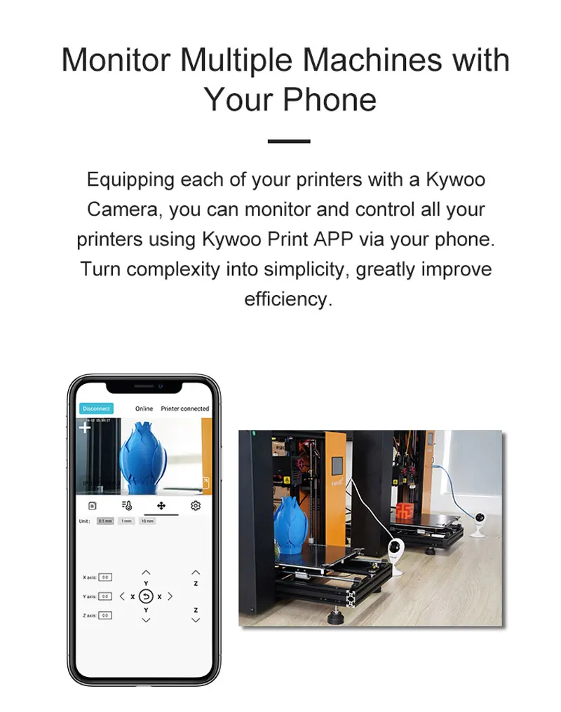 1. Простая установка на 3 шага, быстрое подключение: для установки требуется всего 3 шага, другого модуля не требуется, добавьте по поиску, дистанционное управление несколькими 3D принтерами с функцией переключения одной кнопки.