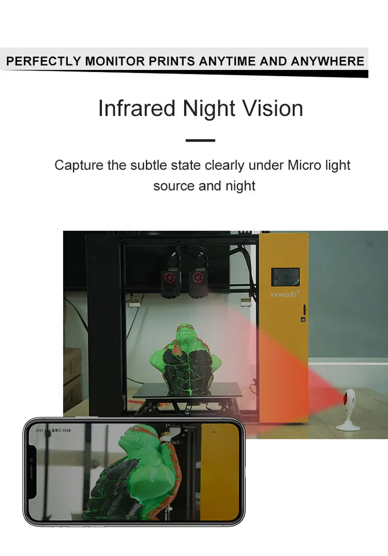 4. Инфракрасное Ночное Видение: встроенные инфракрасные светодиоды обеспечивают улучшенное ночное видение для более четкого мониторинга состояния печати, даже при условиях низкого светильник.
