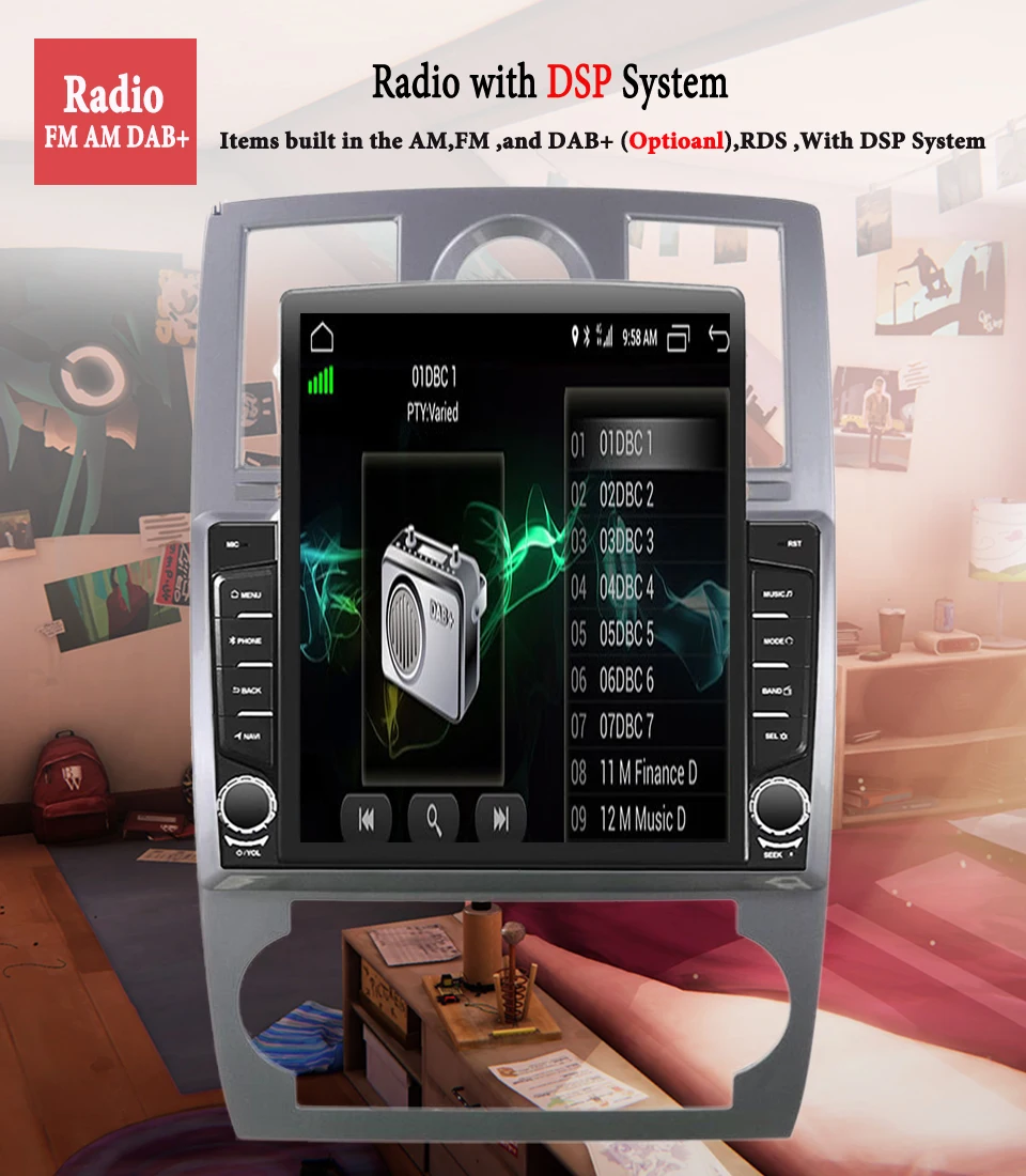 Радио поставляется с функцией RDS, встроенным FM / AM частотой, DAB + поддерживается, прекрасный звук с DSP системой, отлично!
