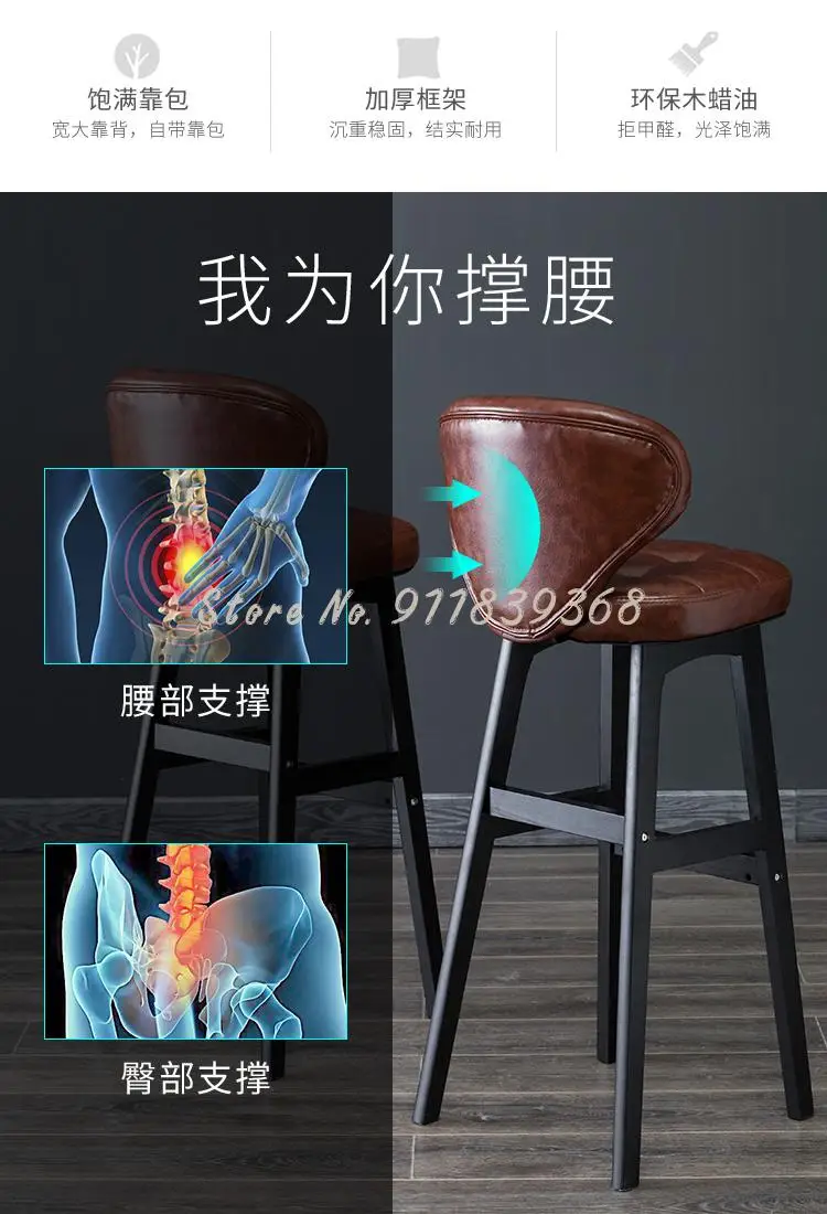 Простой барный стул из массива дерева современный новый китайский Семья