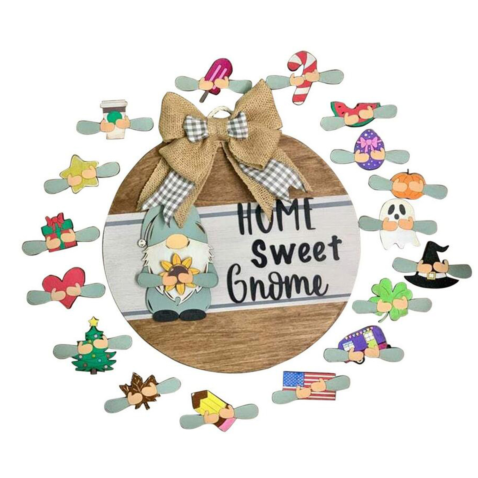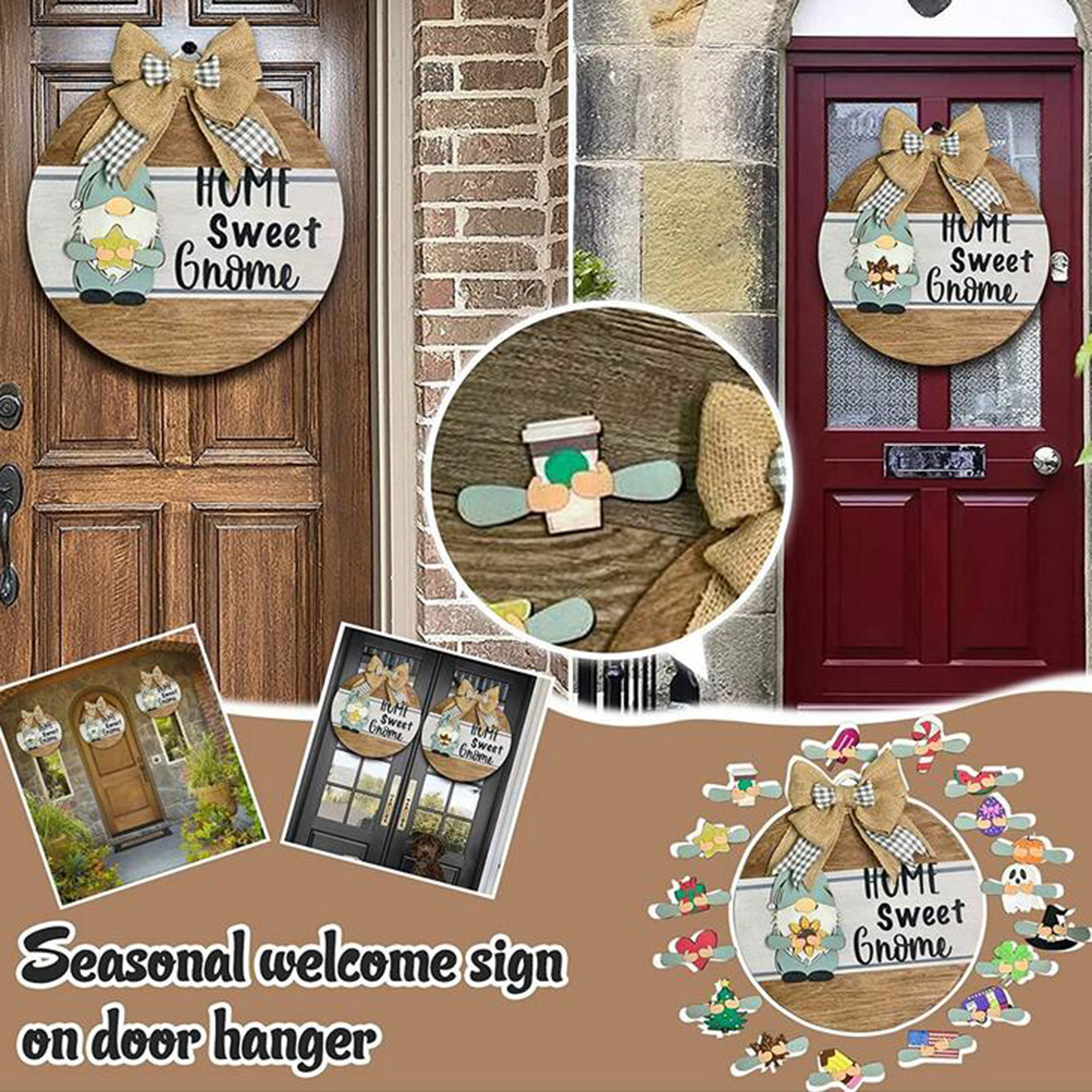 Gnome Door Hanger Seasonal Welcome Sign with Interchangeable Holiday Pieces