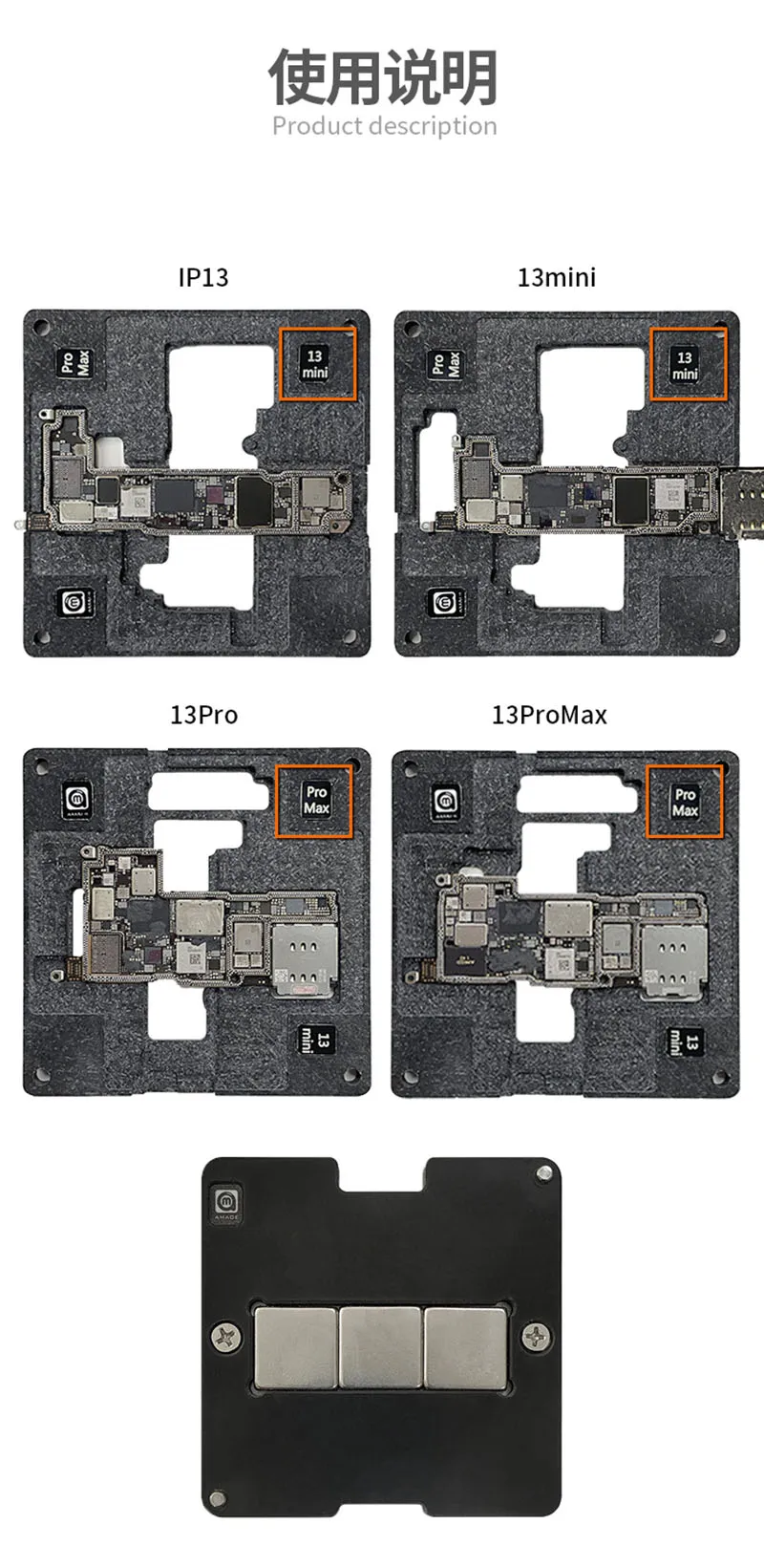 Amaoe оловянный шаблон приспособление для iPhone X/11Pro/12 mini/13 Pro Max/14 Plus материнская плата средняя рама BGA трафаретная платформа