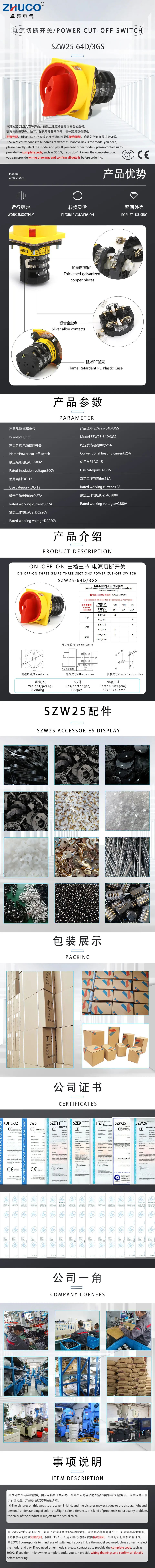 Чжуко SZW25-64D/3GS 25A ВКЛ-ВЫКЛ-ВКЛ три полюса отключения питания навесной замок Мастер управления поворотная ручка переключения кулачковый переключатель