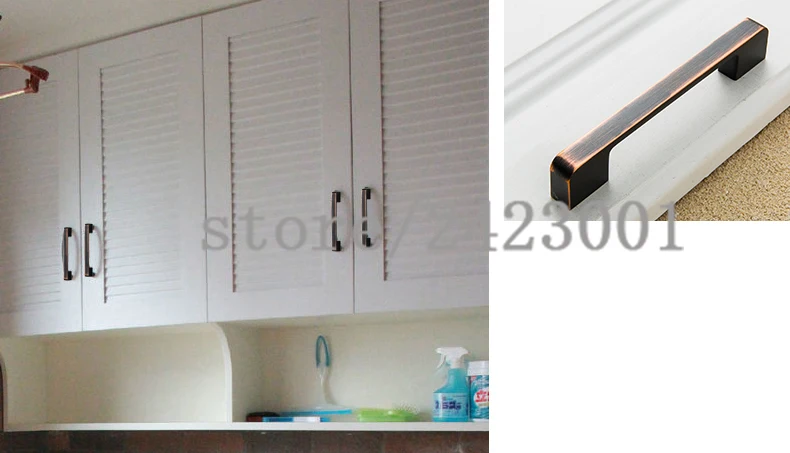 Сплав двери простые современные оцинкованные ручки ящика шкафа кухонные ручки черная ручка для мебельных аксессуаров 128-320 мм