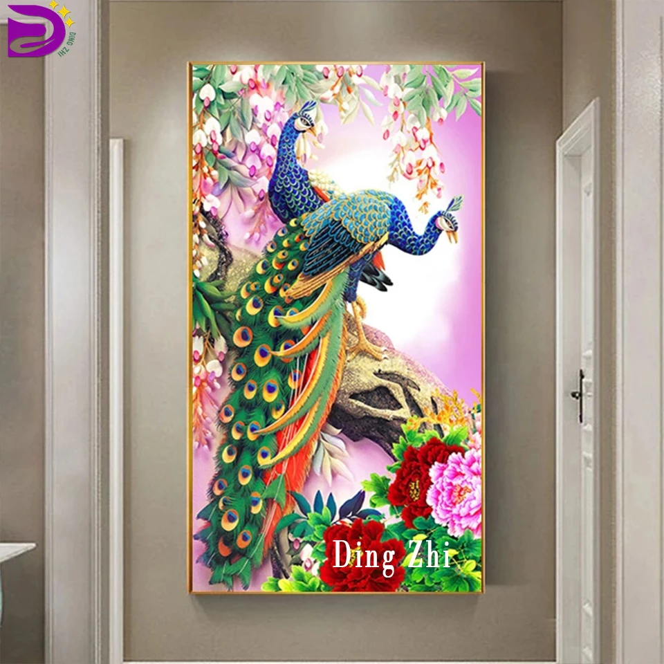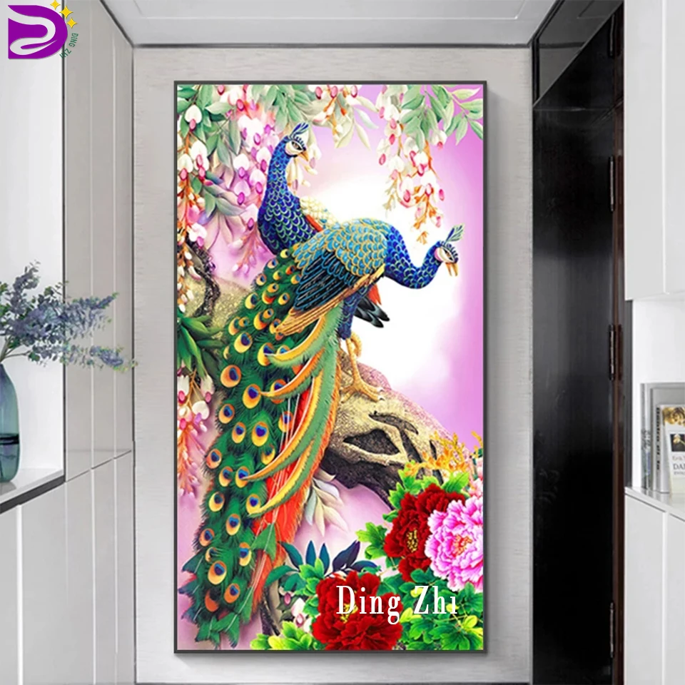 Квадратный круглый животный Павлин алмазная живопись цветок пиона вышивка Алмазная мозаика большой размер подходит для коридора вход