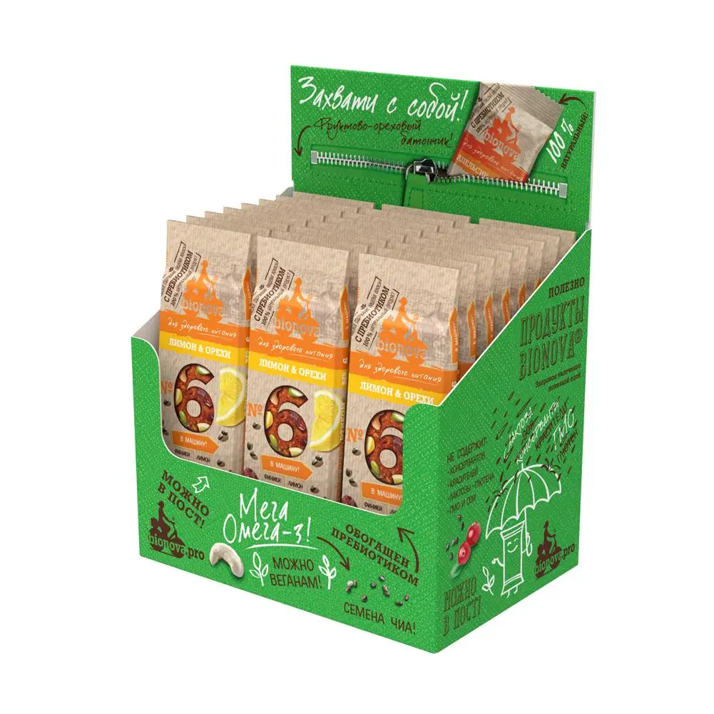 Батончик фруктово-ореховый Бионова с лимоном 35г по 24шт