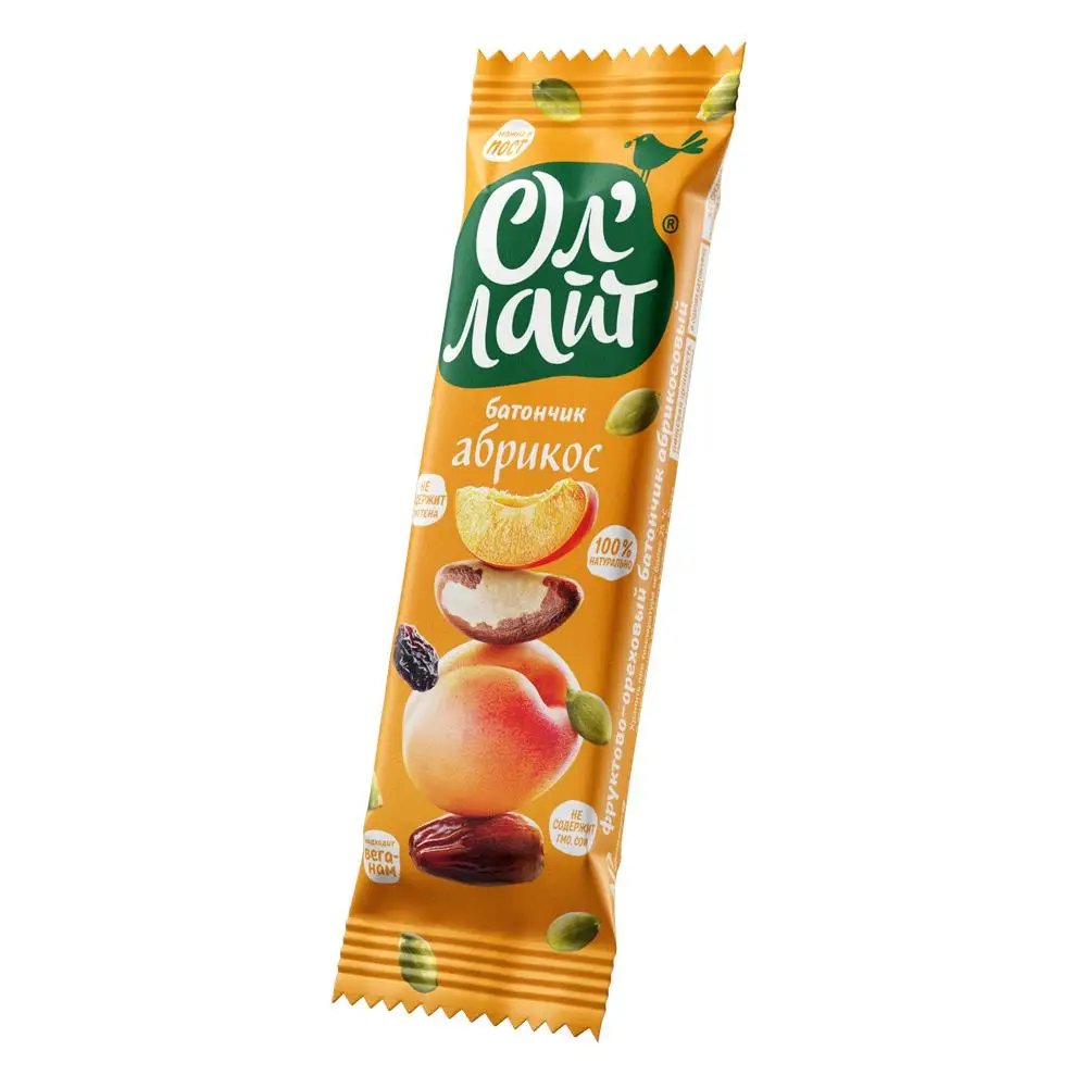 Батончик фруктово-ореховый Ол'Лайт Абрикосовый 30г по 25 шт